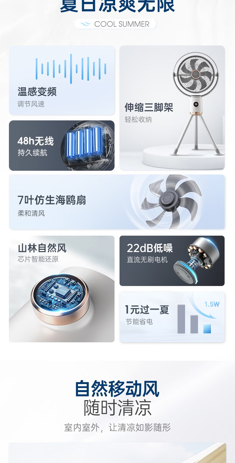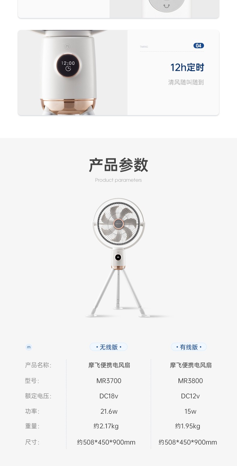 摩飞电器 便携电风扇 MR3700 无线版 21.6W DC18V 1个
