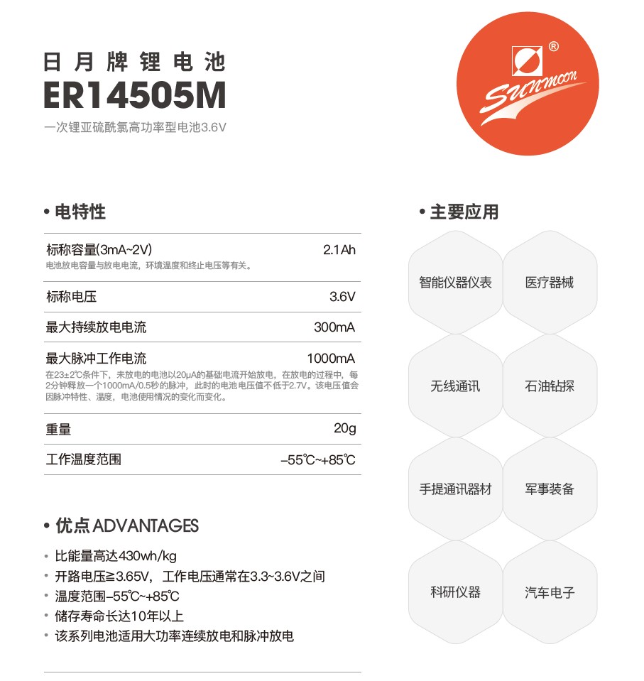 翰兴日月 水表电池 ER14505M 3.6V 光电池 1个