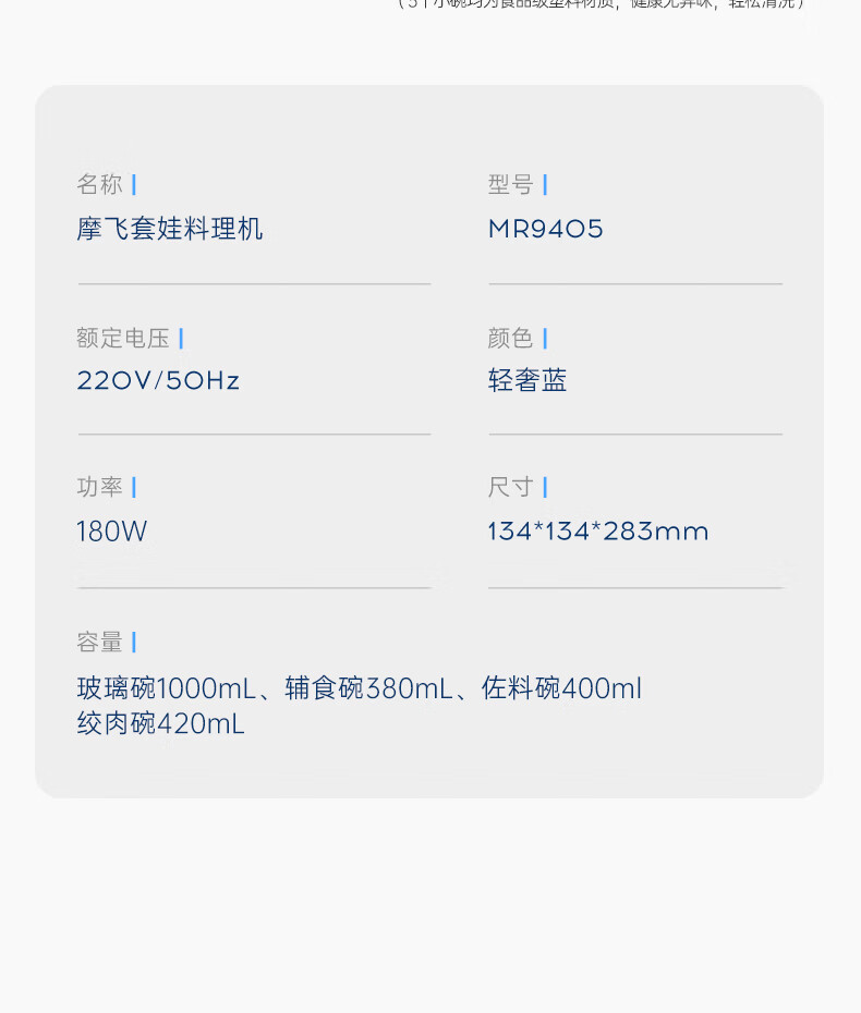 摩飞电器 电动料理机 MR9405 蓝色 134*134*283mm 1个