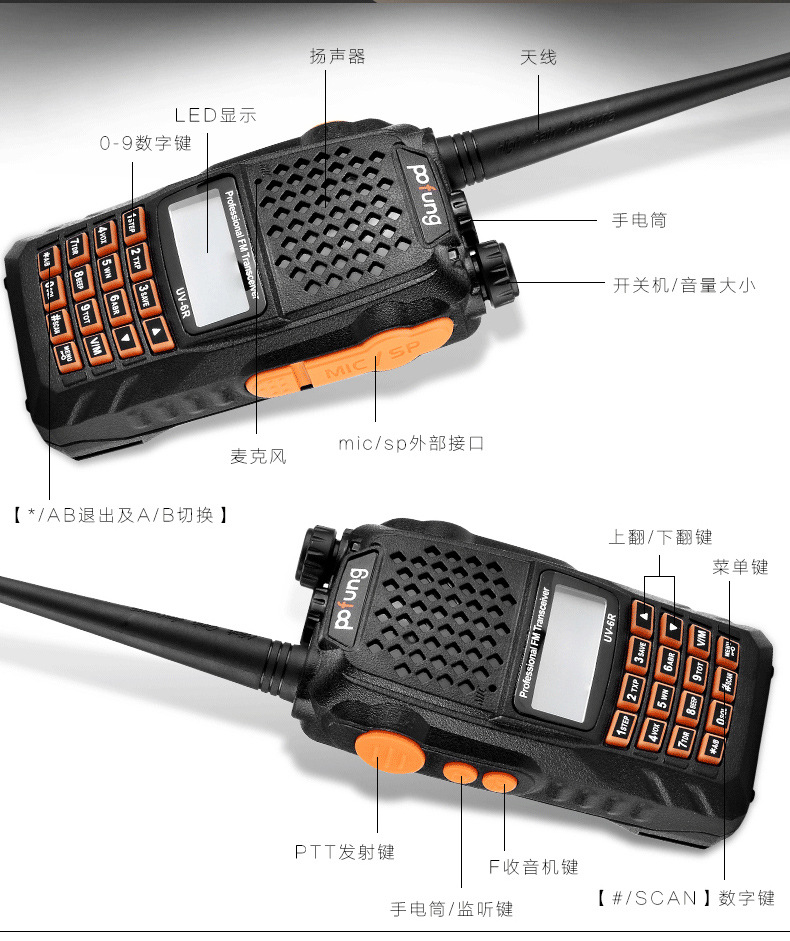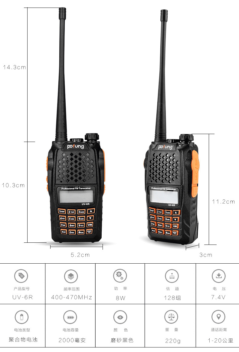 宝锋 大功率对讲机 BF-UV6R 双频双段 1个