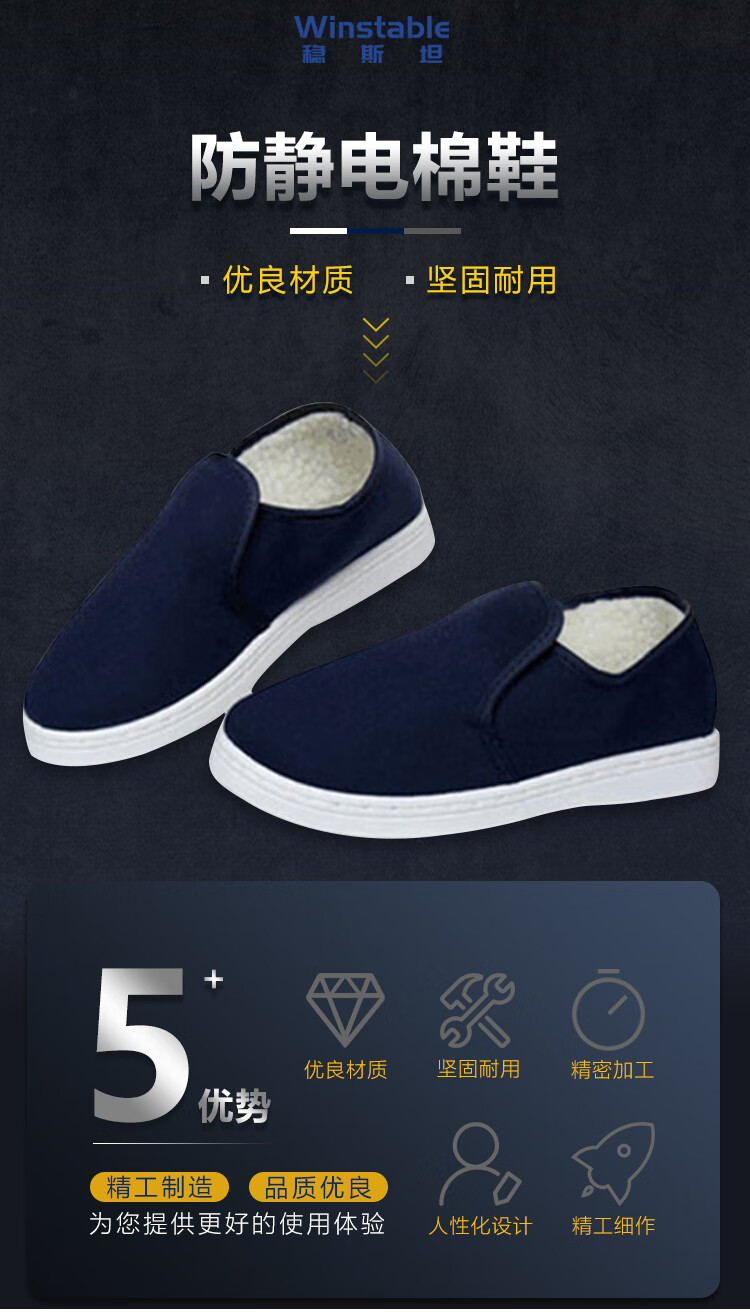 稳斯坦 防静电棉鞋 WST03 蓝色低帮 37 1双