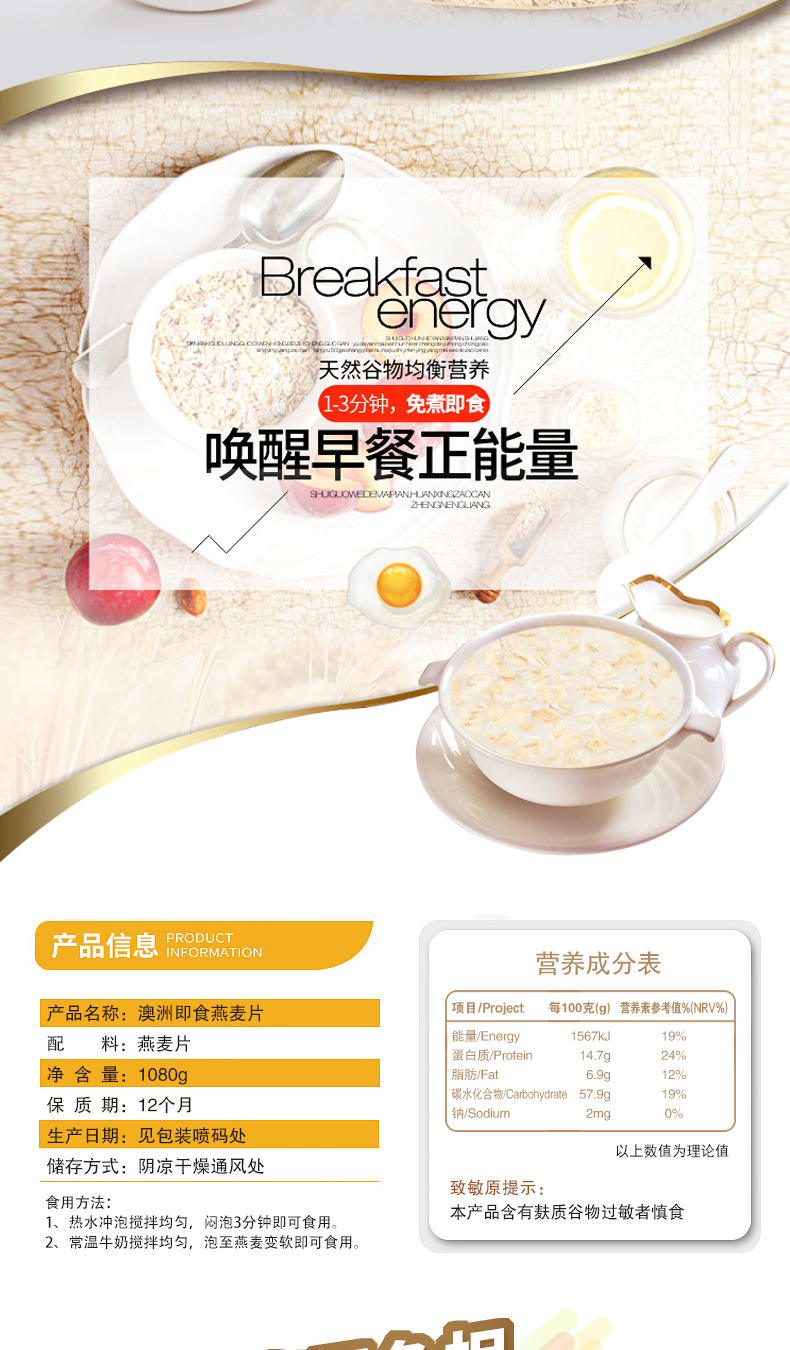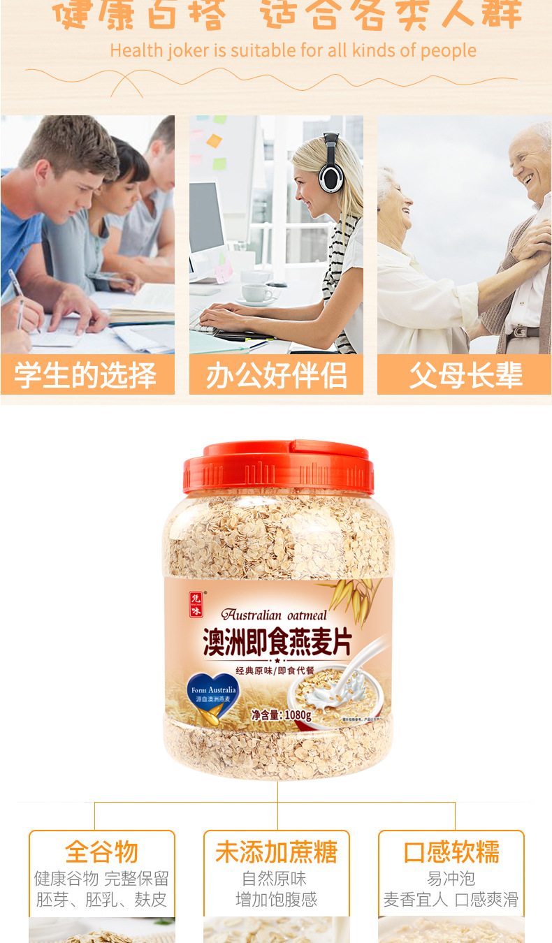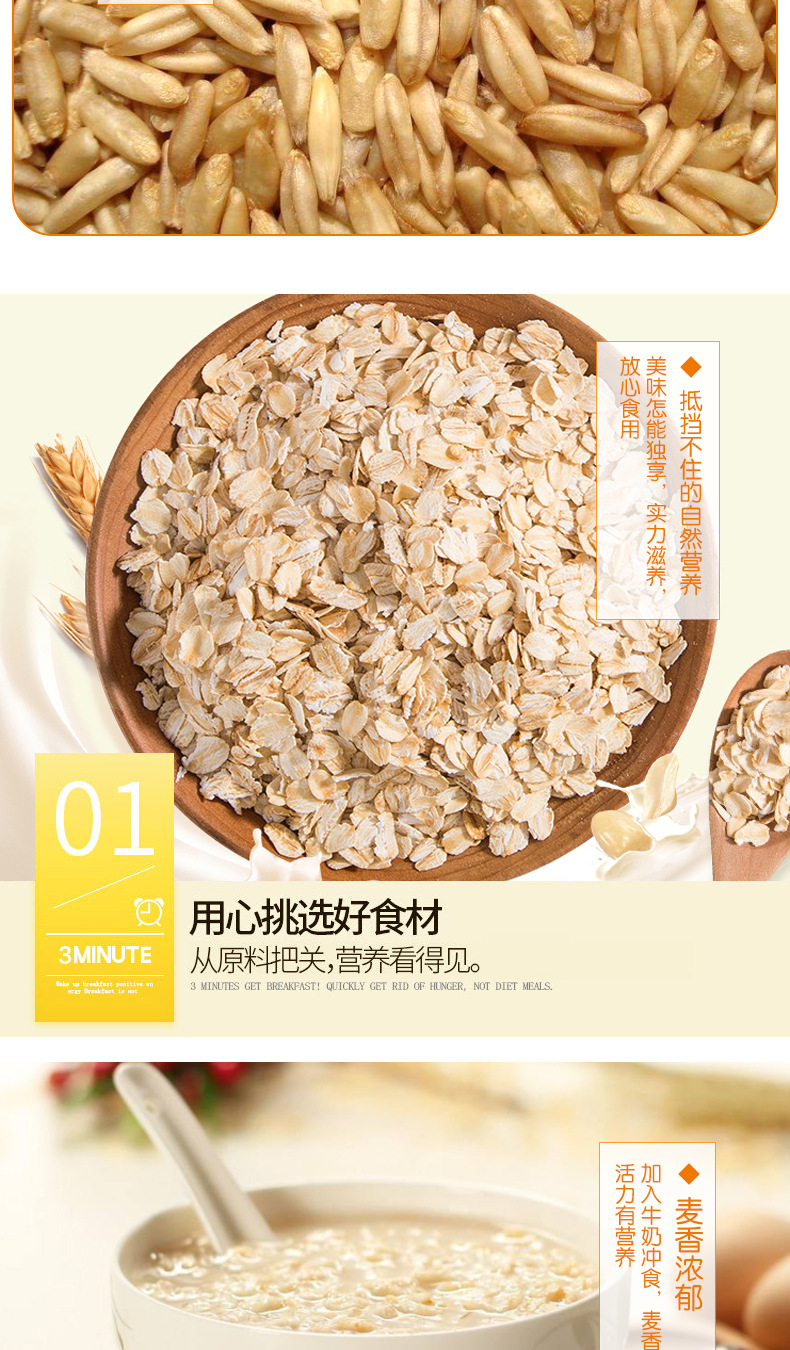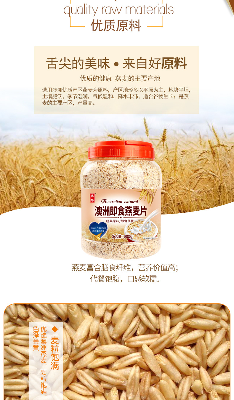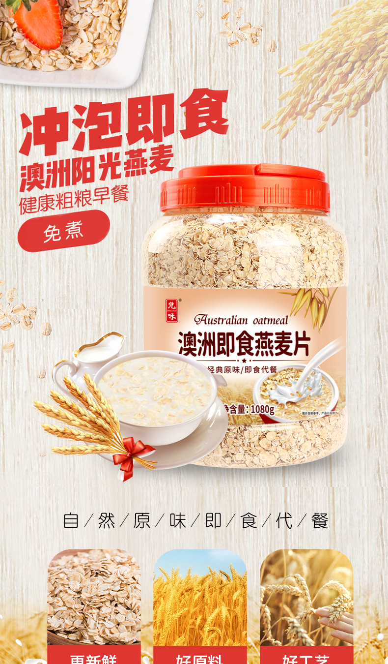五谷新势力 即食燕麦片 1080g 无蔗糖 1罐