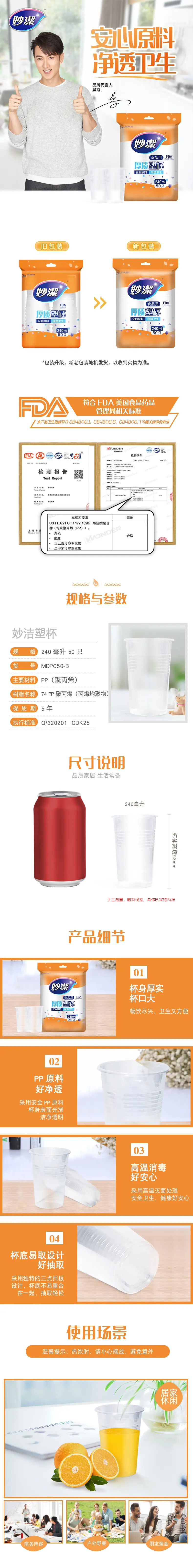 妙洁 一次性厚质塑杯 MDPC100-B 240mL 100只 1包
