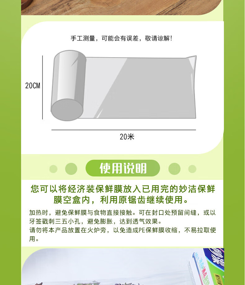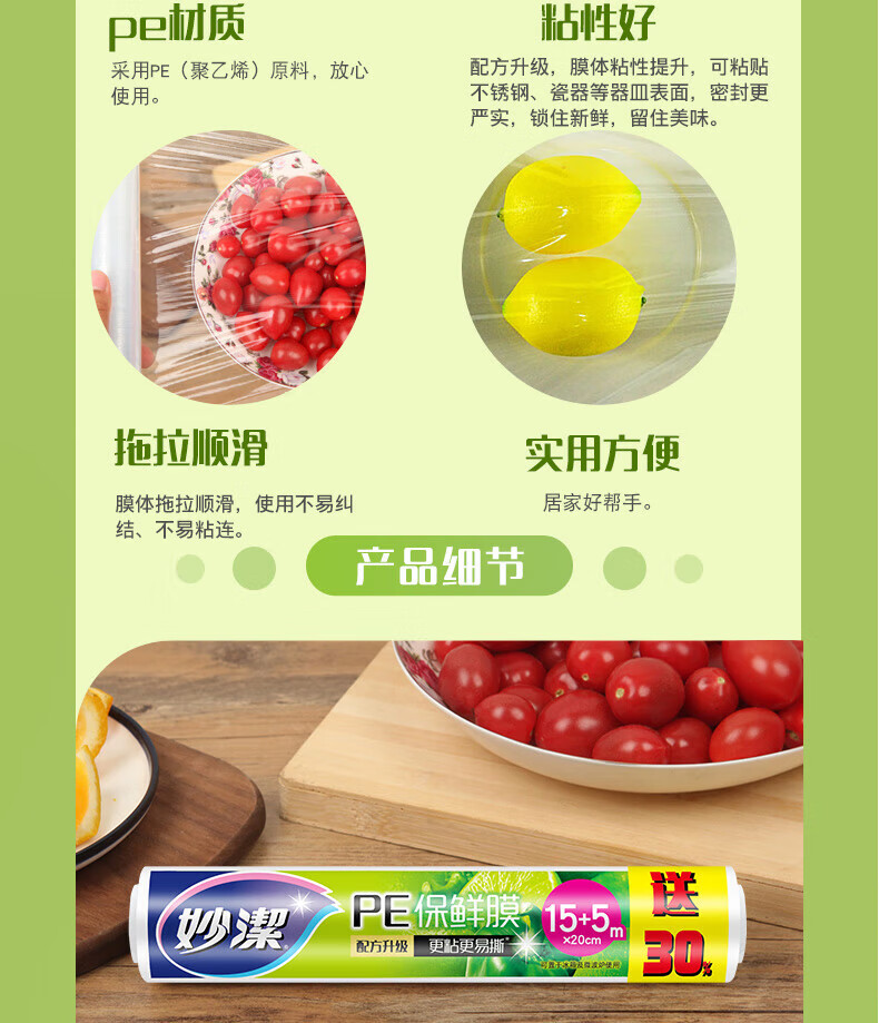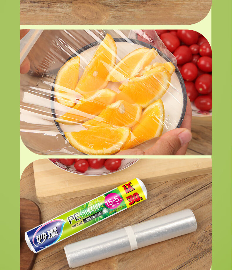 妙洁 PE保鲜膜 M50+30%-X 30cm×(15m+5m) 30盒 1箱