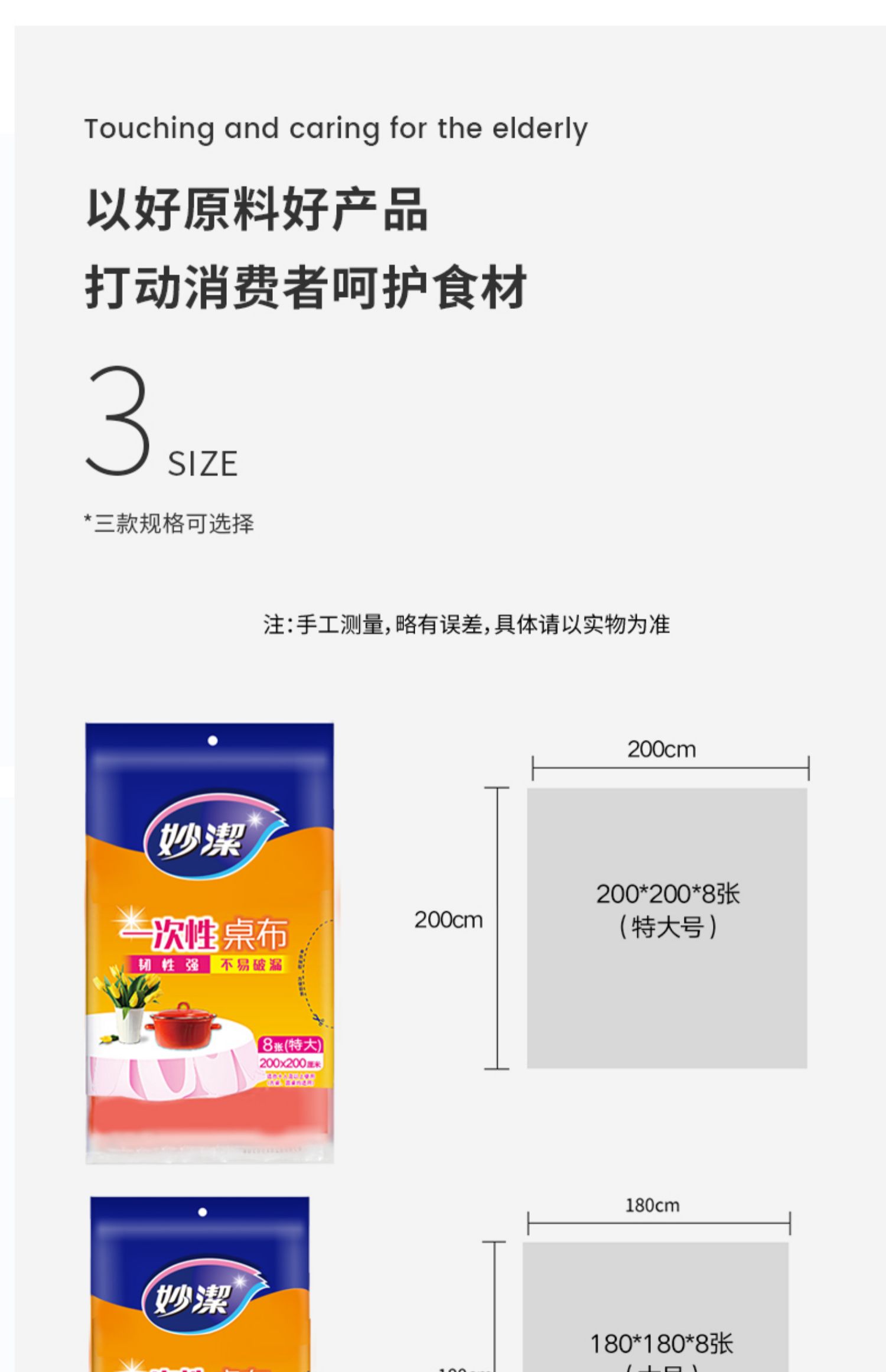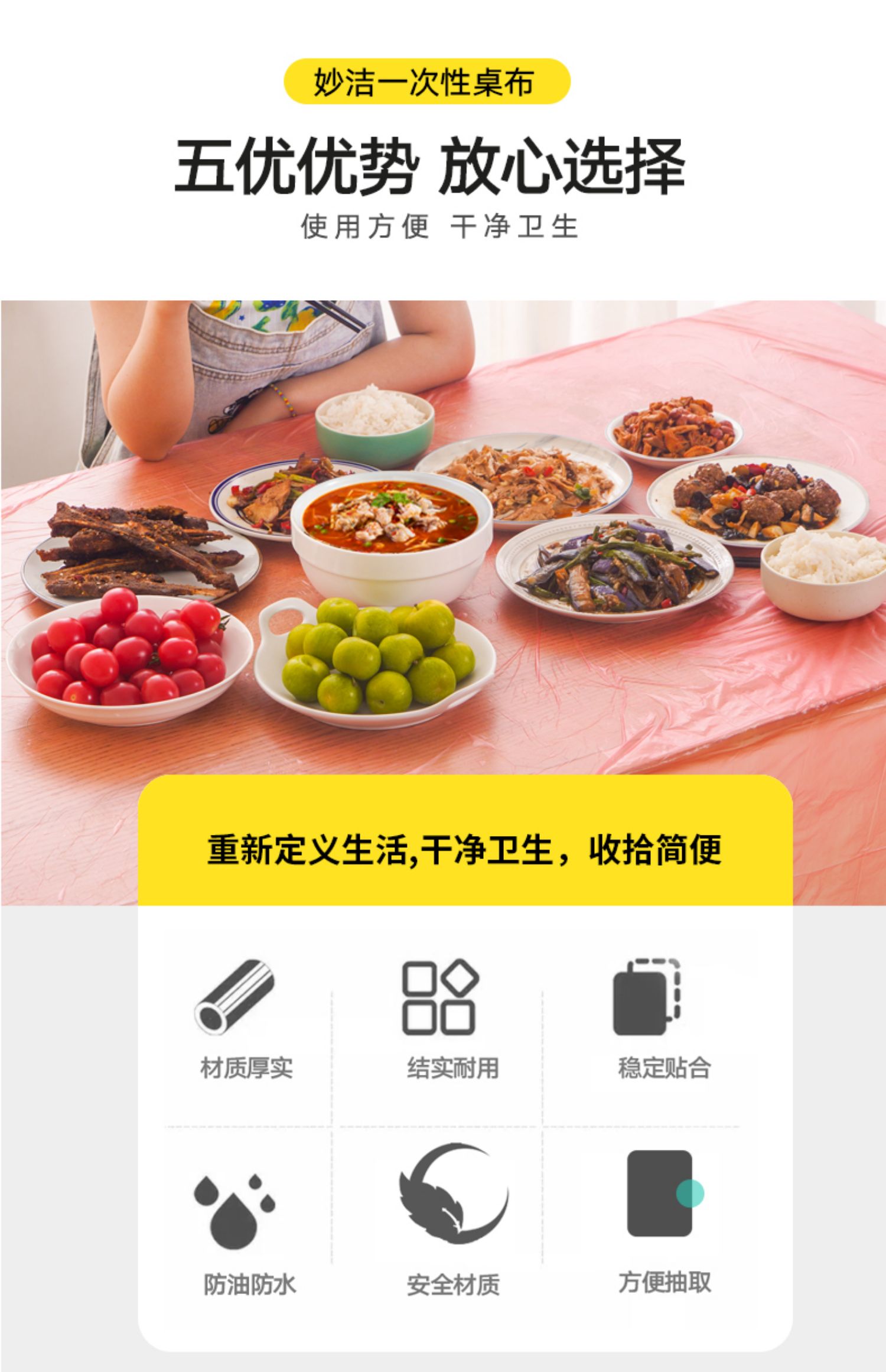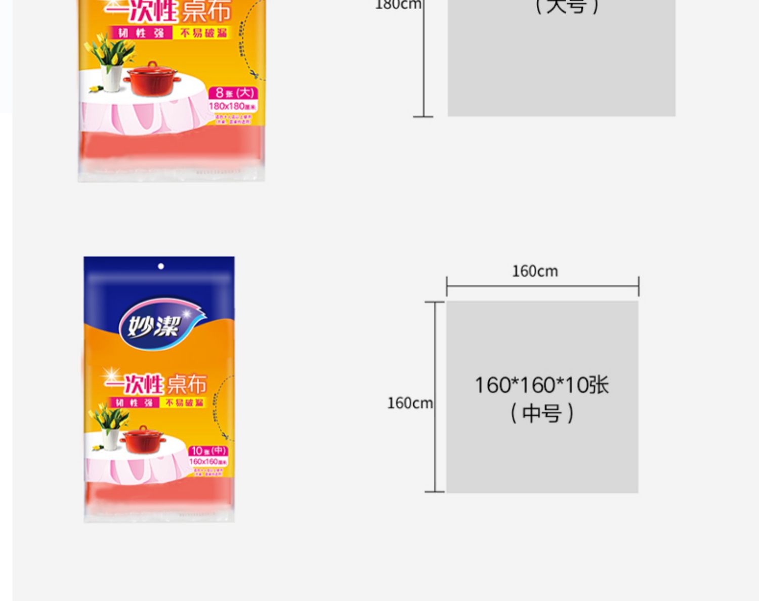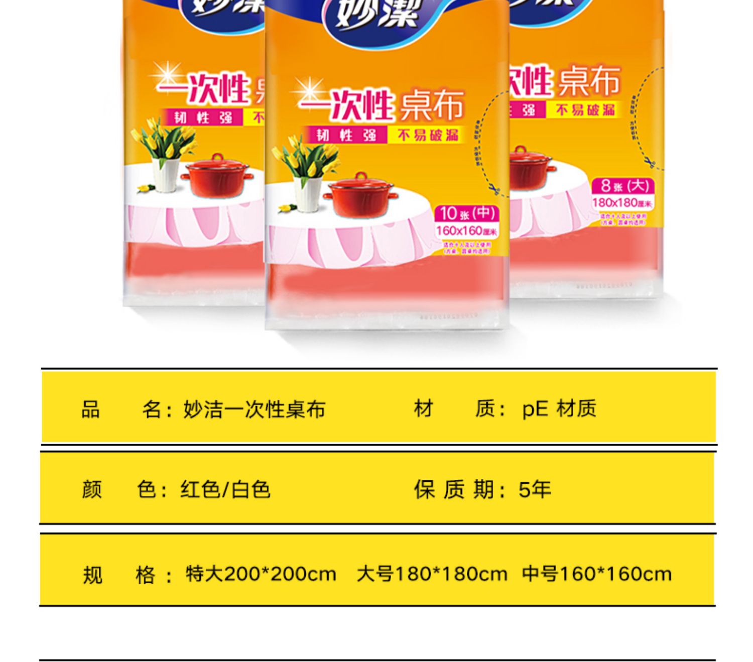 妙洁 C型一次性桌布 MBDTCWXL 2×2m×8张 白色 30包 1箱