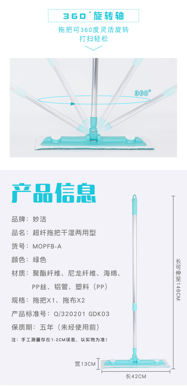 妙洁 超纤拖把干湿两用型 MOPFB 42cm×1.46m 1把