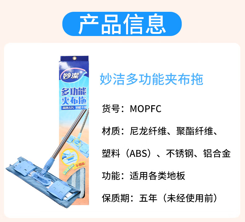 妙洁 多功能夹布拖 MOPFC 210×430mm 12个 1件