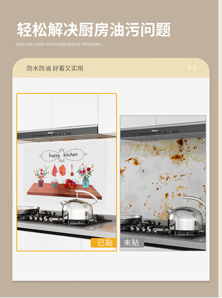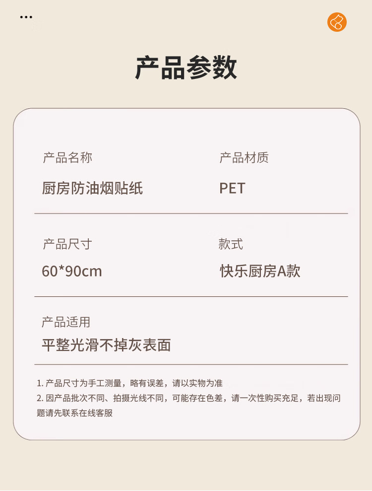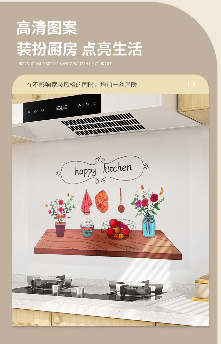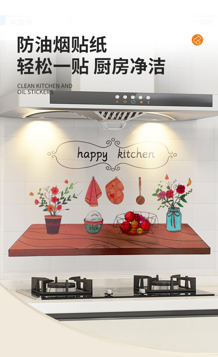 墨斗鱼 耐高温防油烟贴纸 快乐厨房 60*90cm 2片 1件