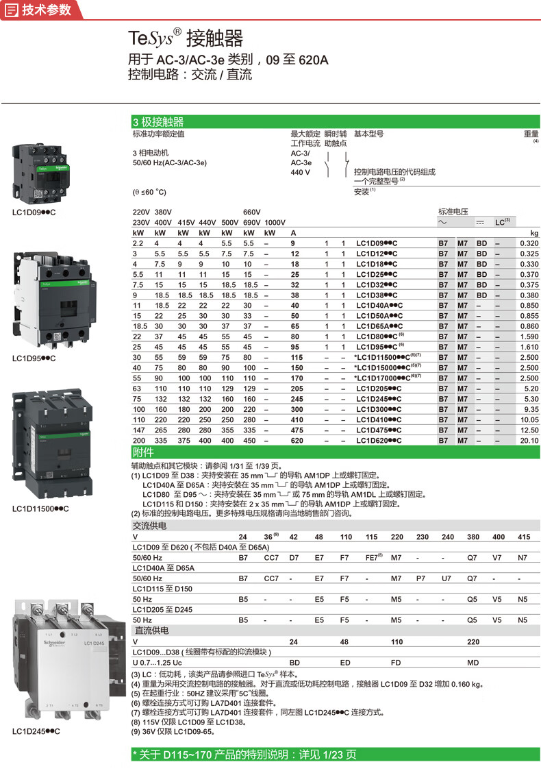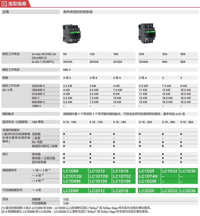 施耐德电气 D系列三极交流接触器 LC1D18BDC 3P 18A 1个