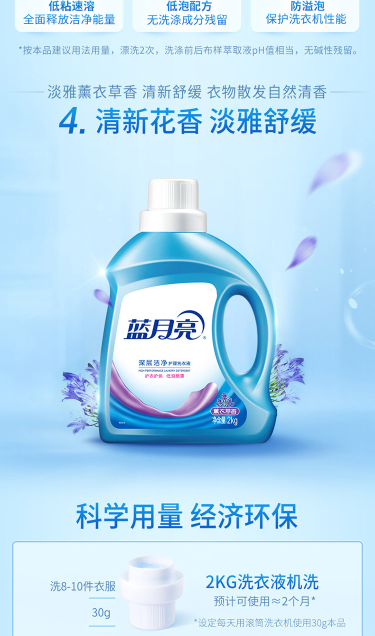蓝月亮 薰衣草洁净洗衣液套装 2kg瓶+1kg*3袋 4件 1套