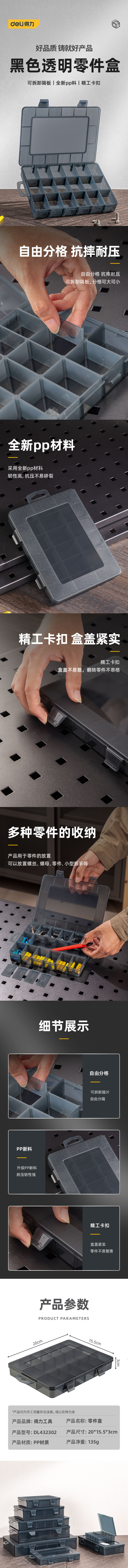 得力 零件盒 DL432302 20x15.5x3cm 18小格 黑 1只