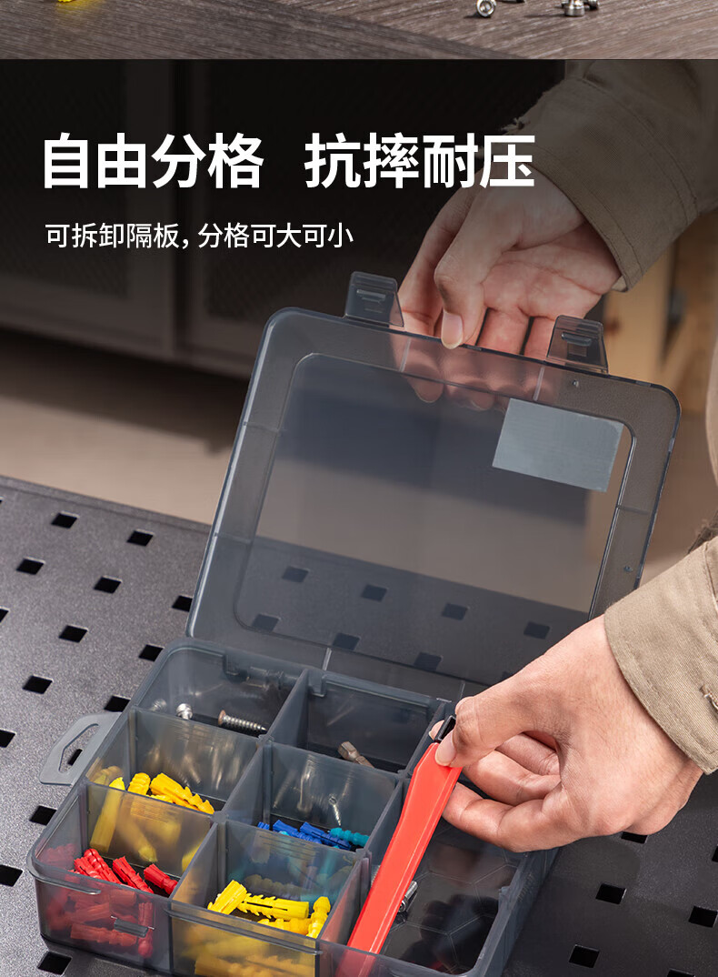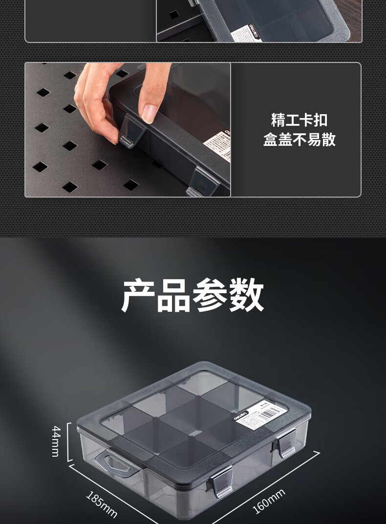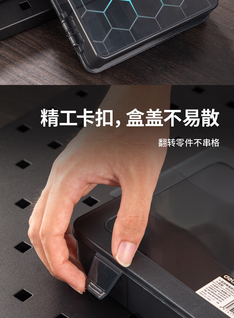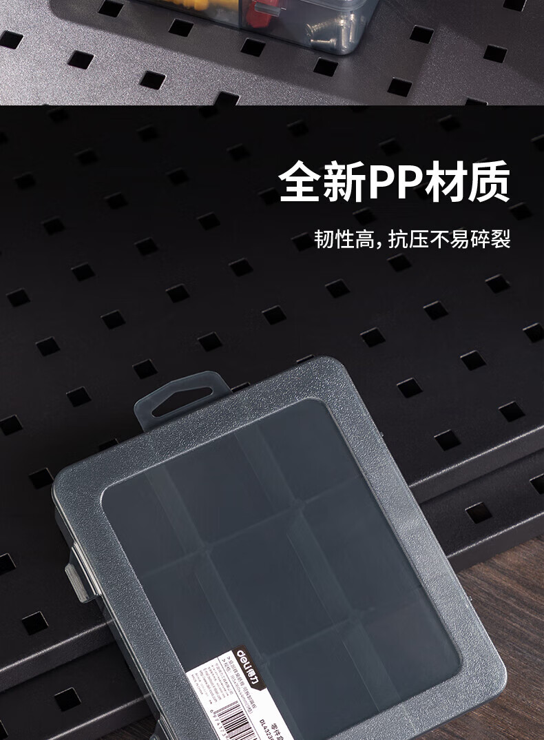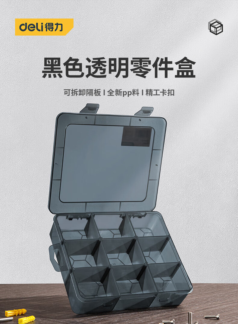 得力 零件盒 DL432303 18.5x16x4.4cm 9格 黑 1只