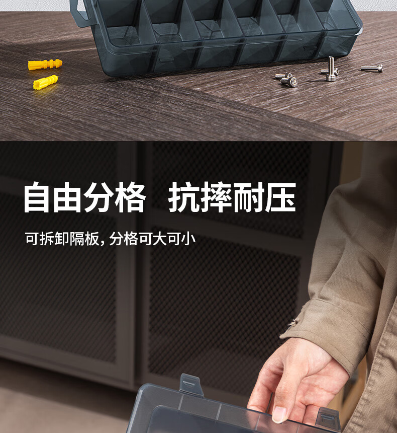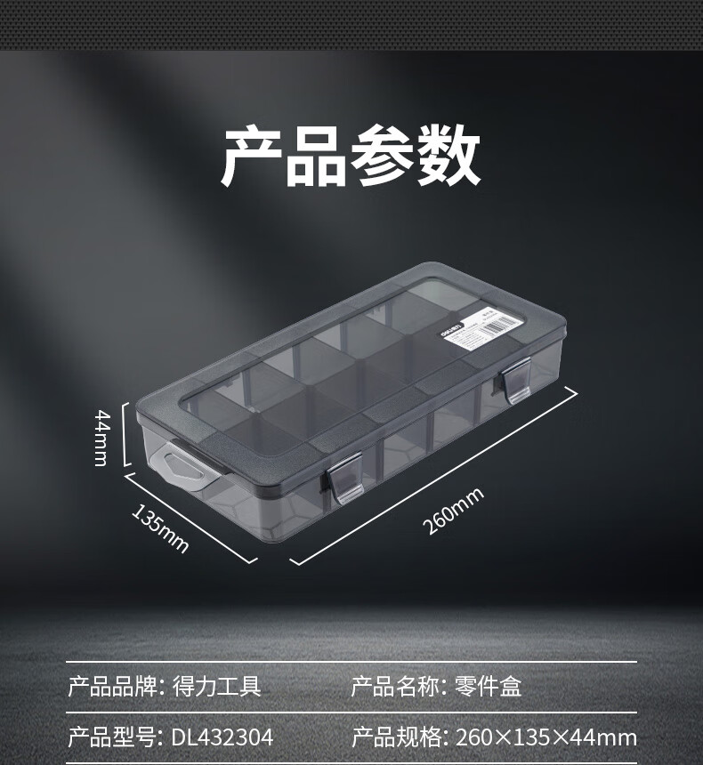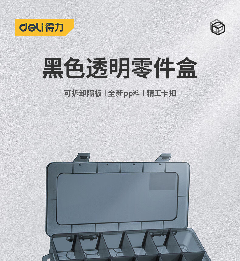 得力 零件盒 DL432304 26x13.5x4.4cm 12小格 黑 1只