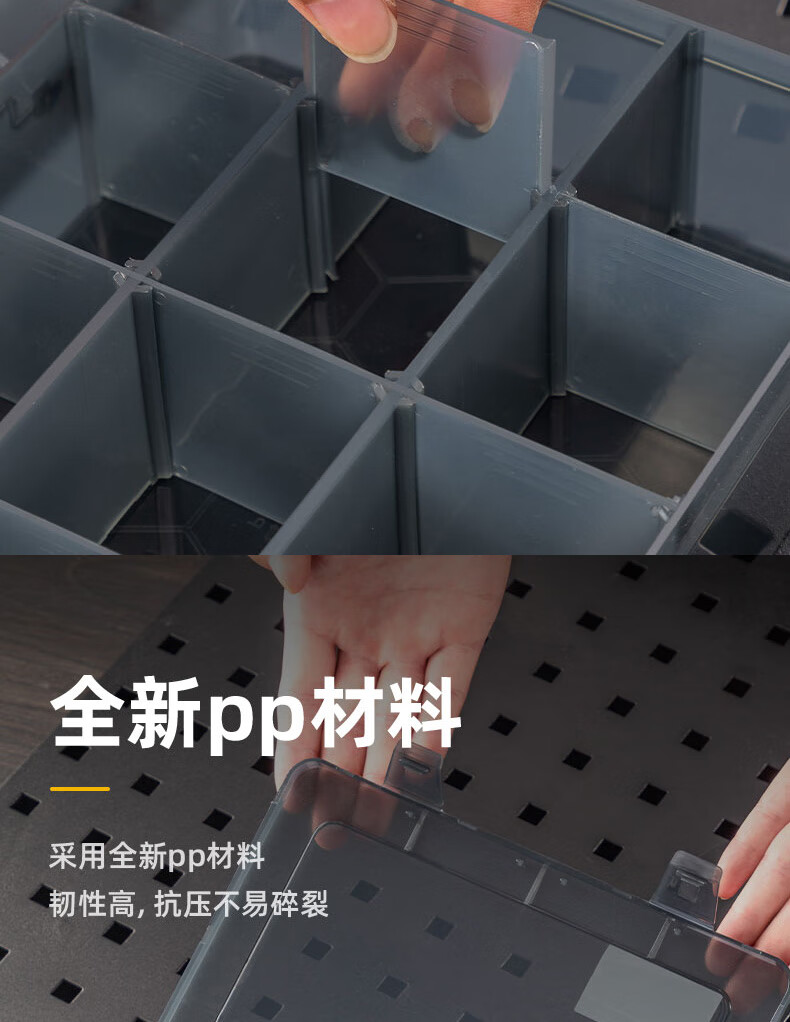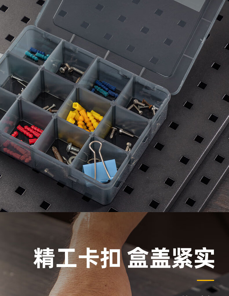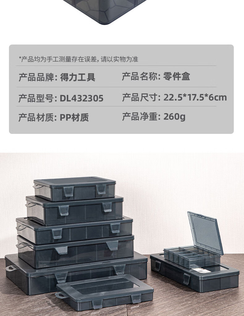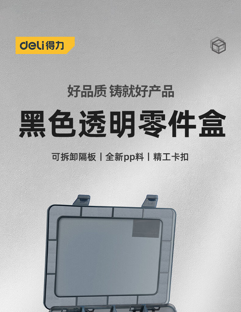 得力 零件盒 DL432305 22.5x17.5x6cm 12大格 黑 1只