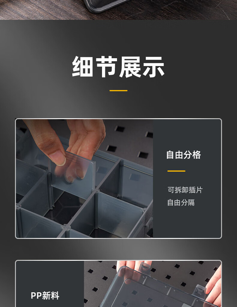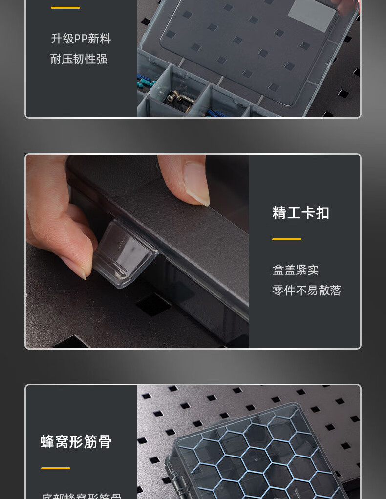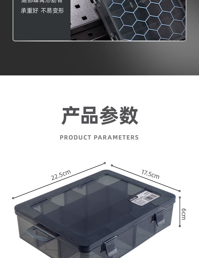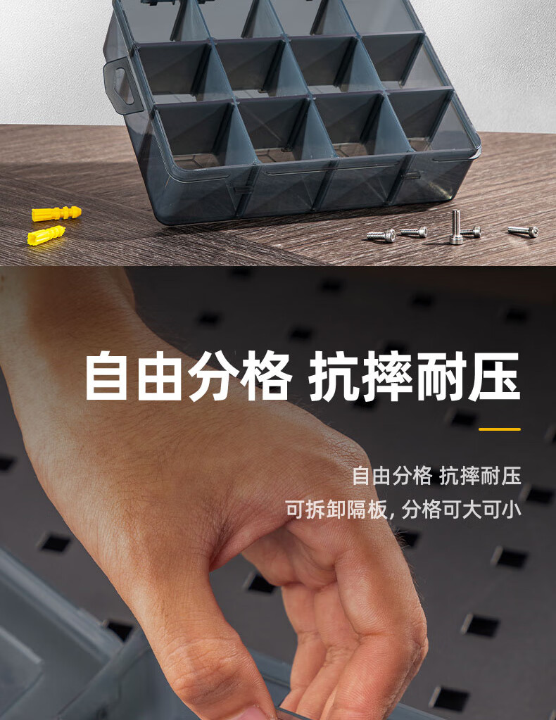 得力 零件盒 DL432305 22.5x17.5x6cm 12大格 黑 1只
