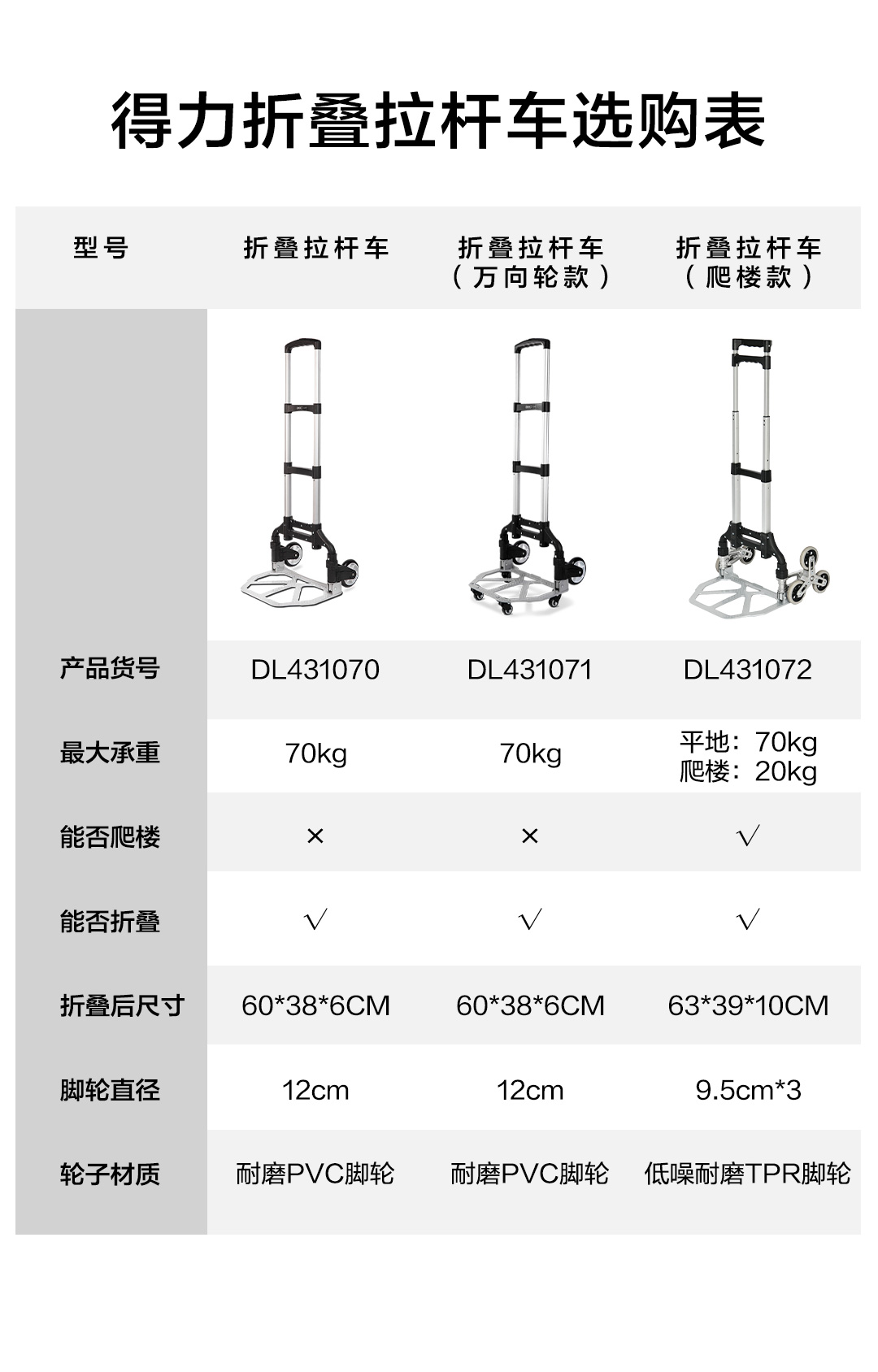 得力 拉杆车 DL431070 承重70kg 常规轮 黑色 1台