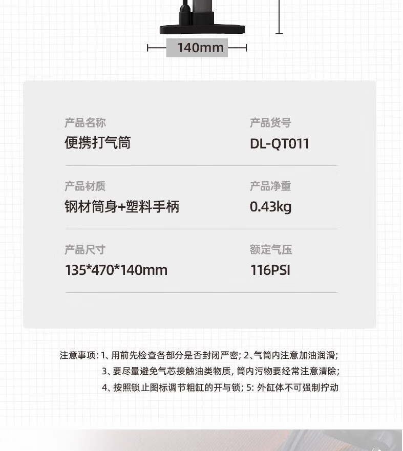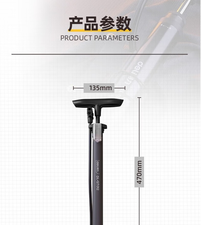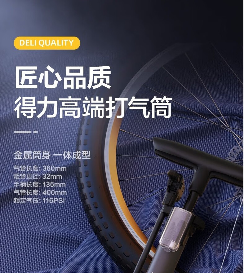 得力 打气筒 DL-QT011 灰色 Φ32*360mm单增压 116psi 1个