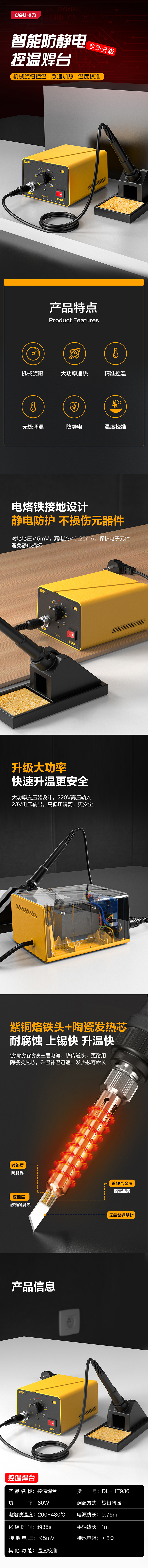 得力 旋钮调温焊台 DL-HT936 60W 黑色 1台