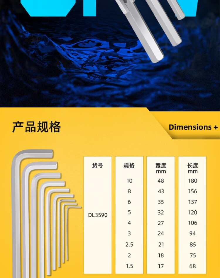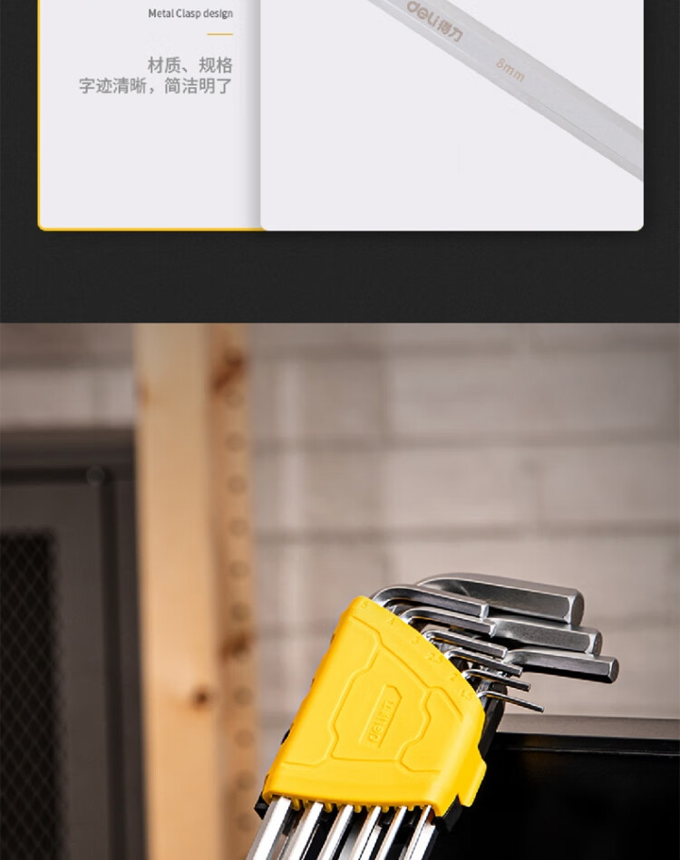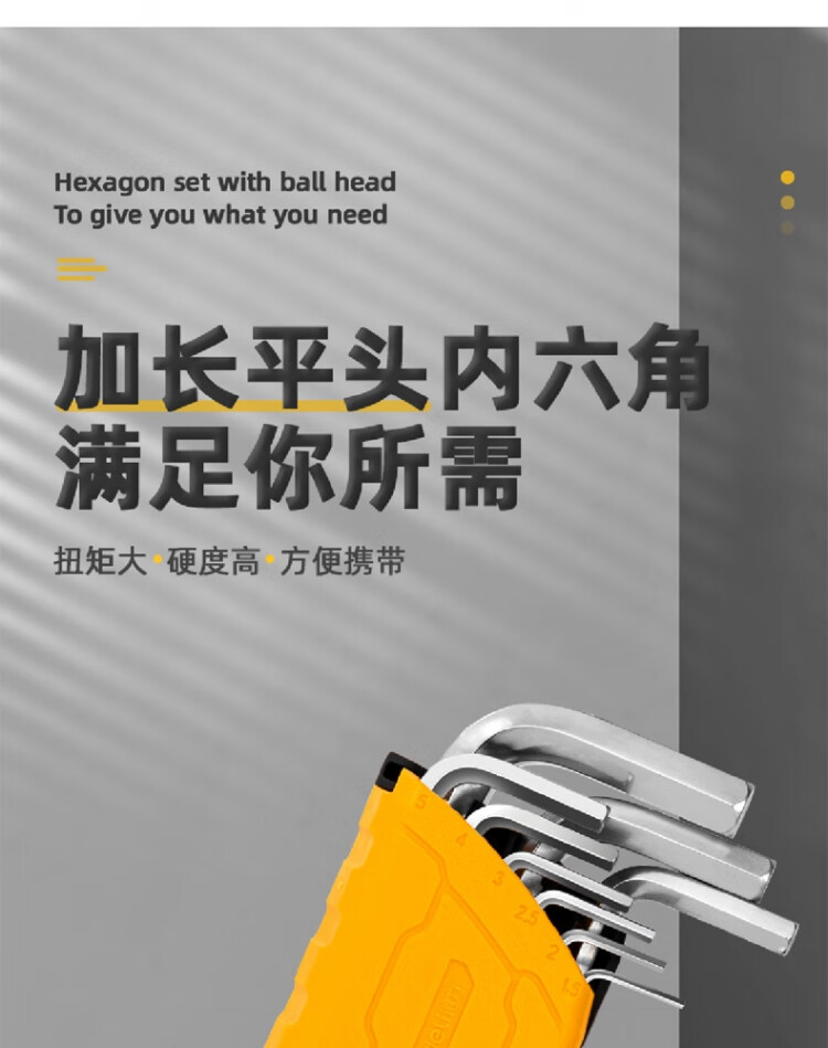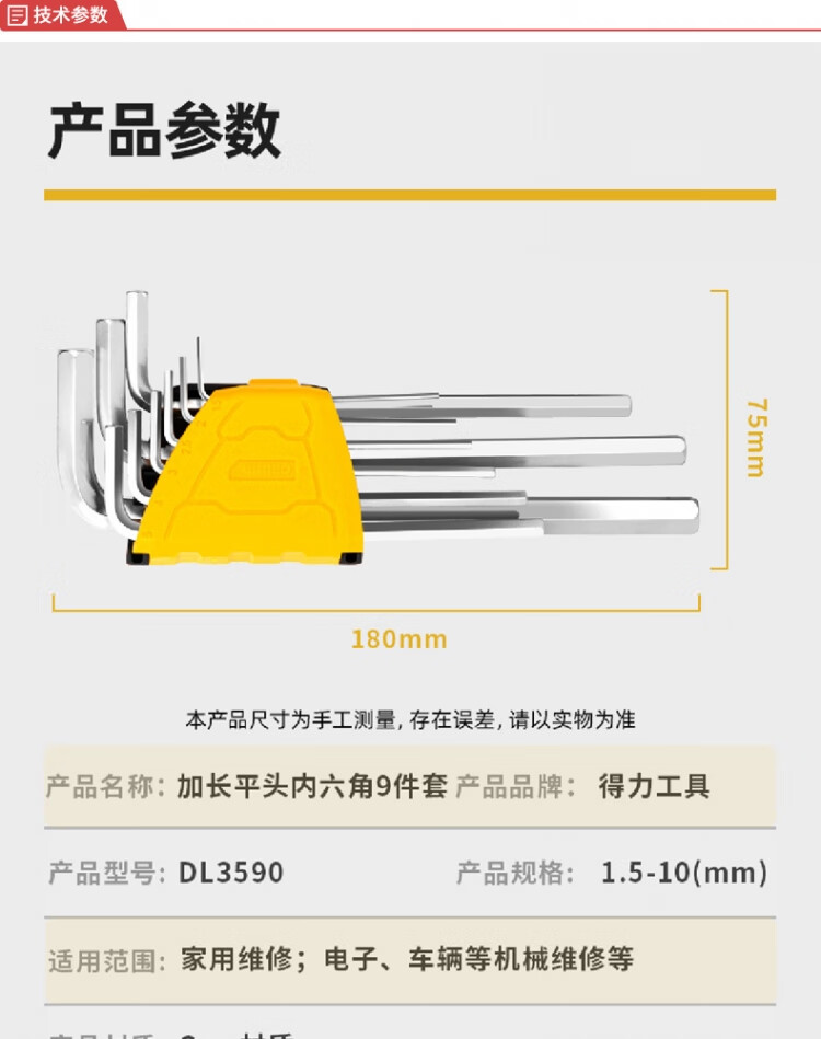 得力 加长平头内六角组套 DL3590 1.5-10mm 黄色 9件套 1套