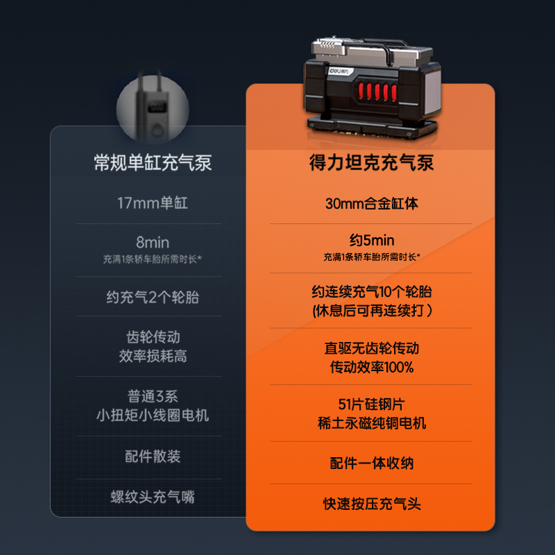 得力 坦克单缸充气泵 DL-TK-A2 120W 30mm合金缸体 1台