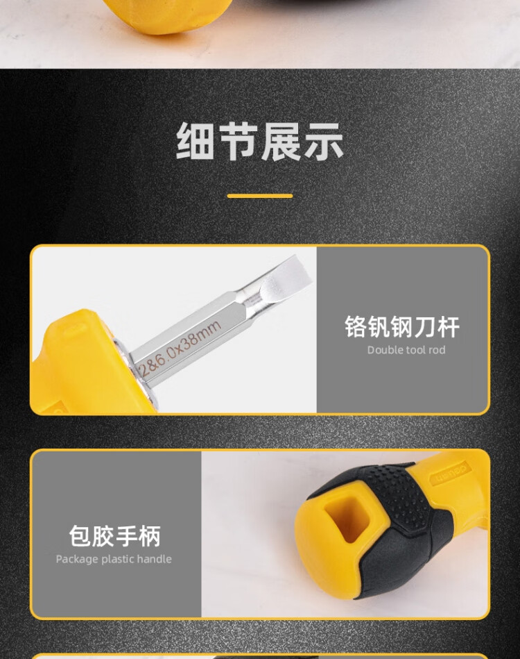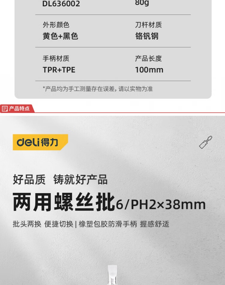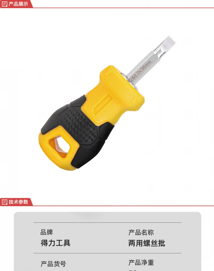 得力 两用螺丝批 DL636002 黄色 6/PH2×38mm 铬钒钢 1把