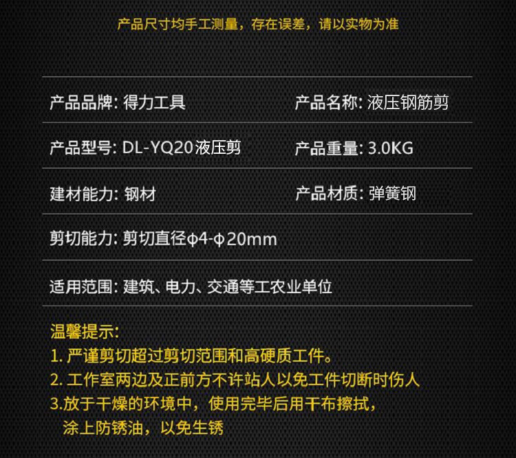 得力 液压钢筋钳 DL-YQ20 黄色 Φ4-20mm 1把