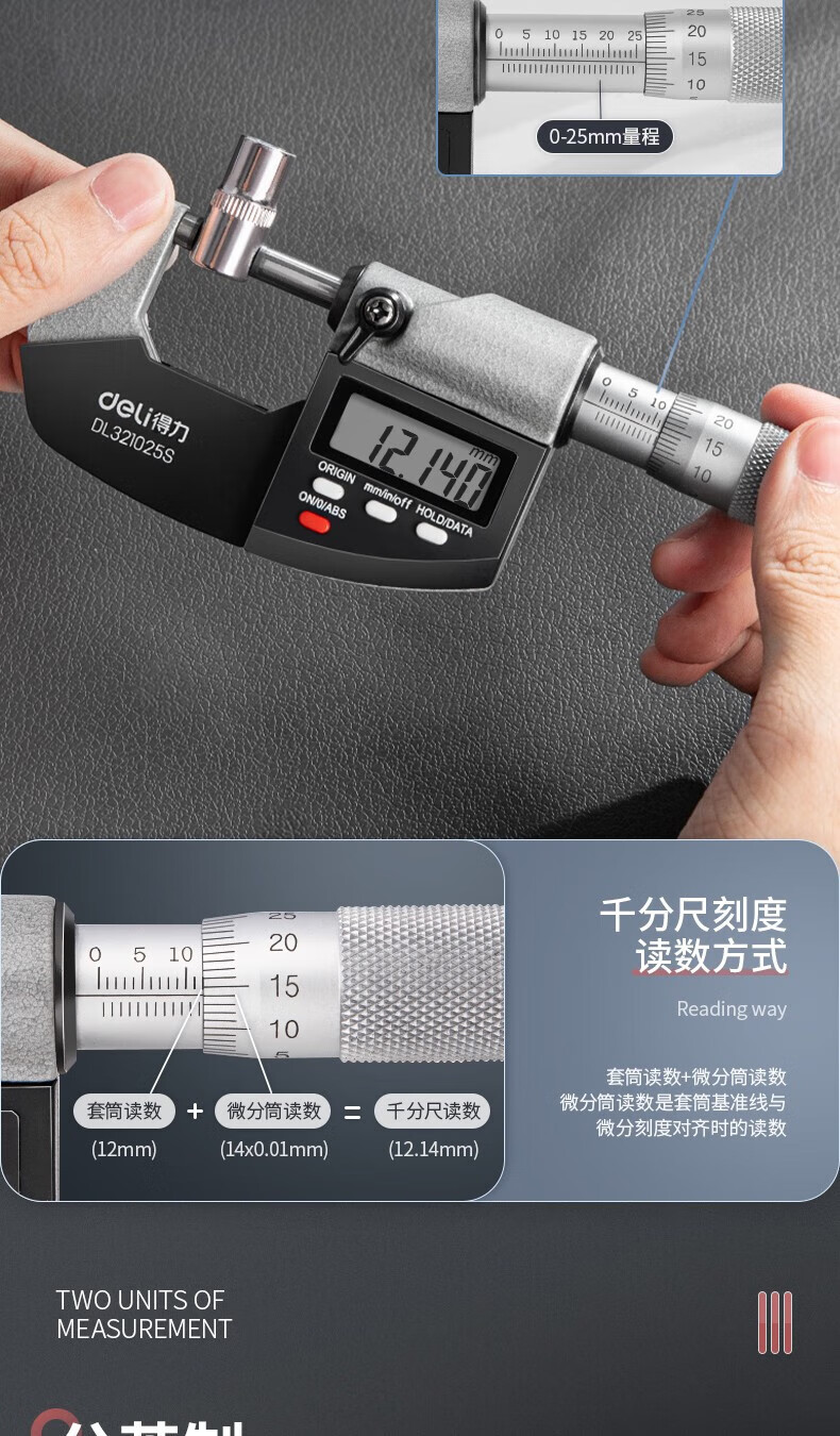 得力 数显外径千分尺 DL321050B 黑色 25-50mm 1把