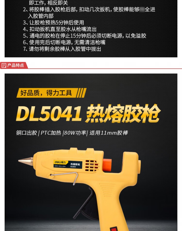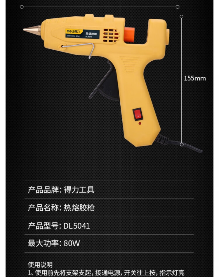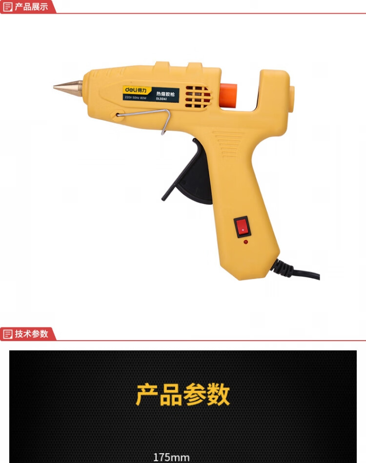 得力 热熔胶枪 DL5041 黄色 铜口 80W 1把