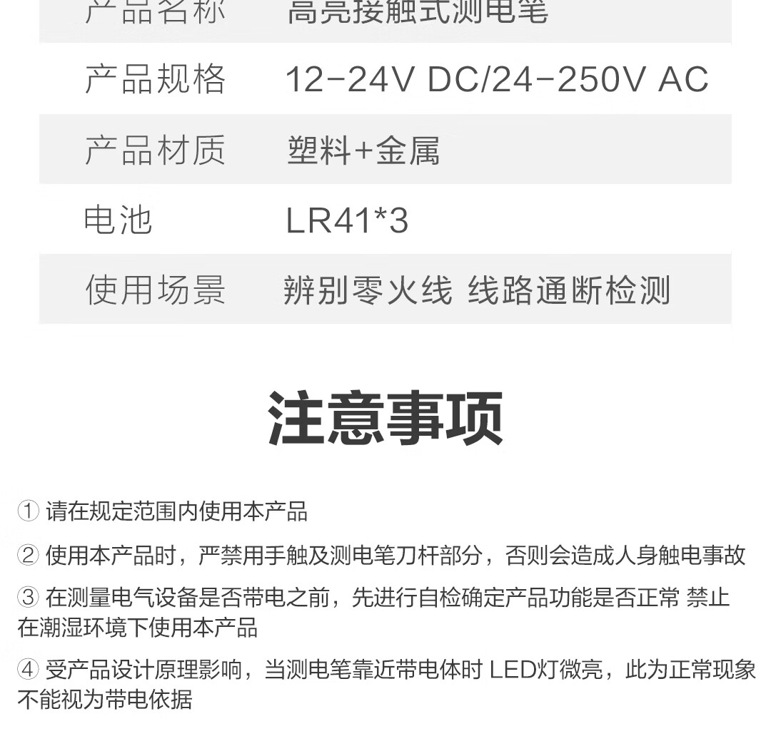 得力 测电笔 DL8004 透明 高亮接触式 12-250V 1支