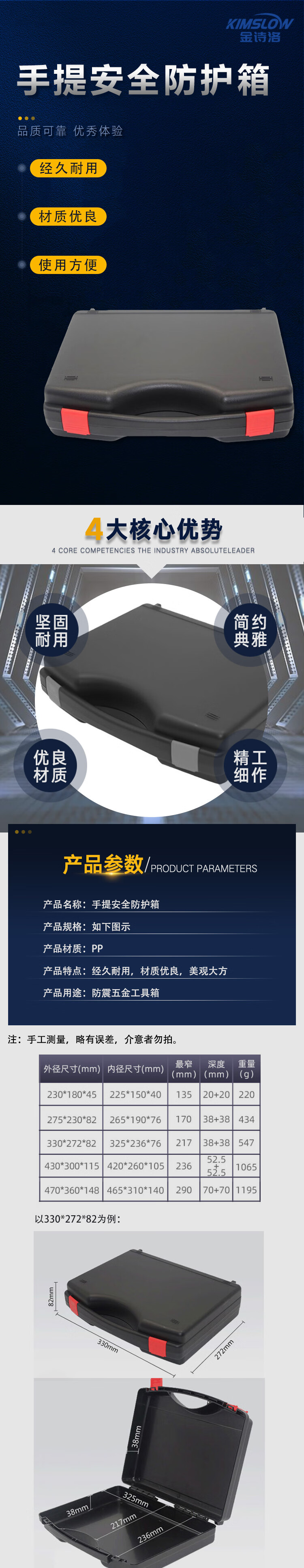 金诗洛 收纳盒五金工具箱 K5392 黑色防震含万能棉 330*272*82mm 1个