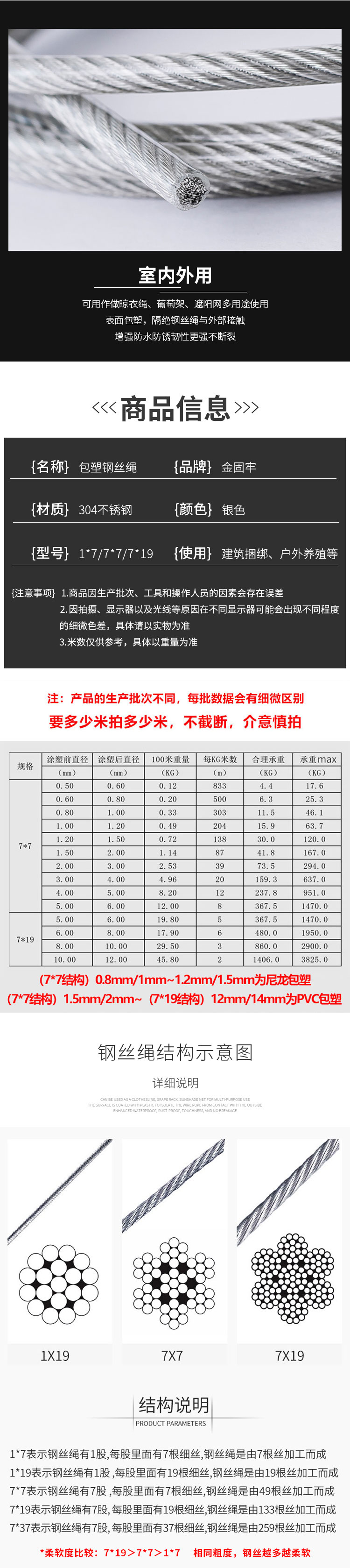 金固牢 304不锈钢透明包塑钢丝绳 KCzy-460 7*7-4mm/5mm 1米