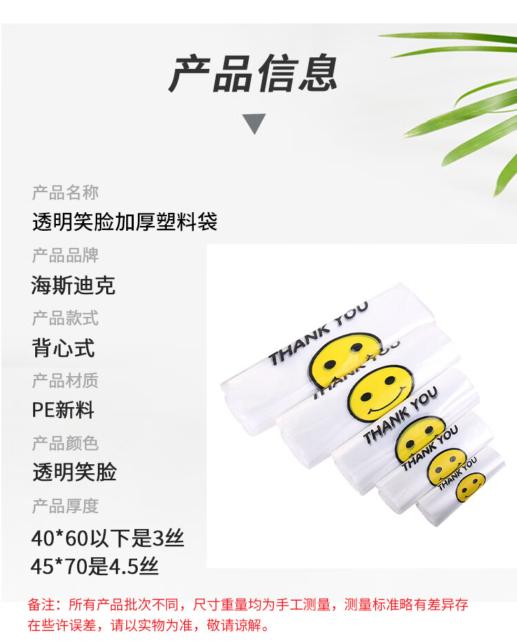 海斯迪克 背心笑脸袋 HKL-137 PE 3丝 32*50cm 100只 1件