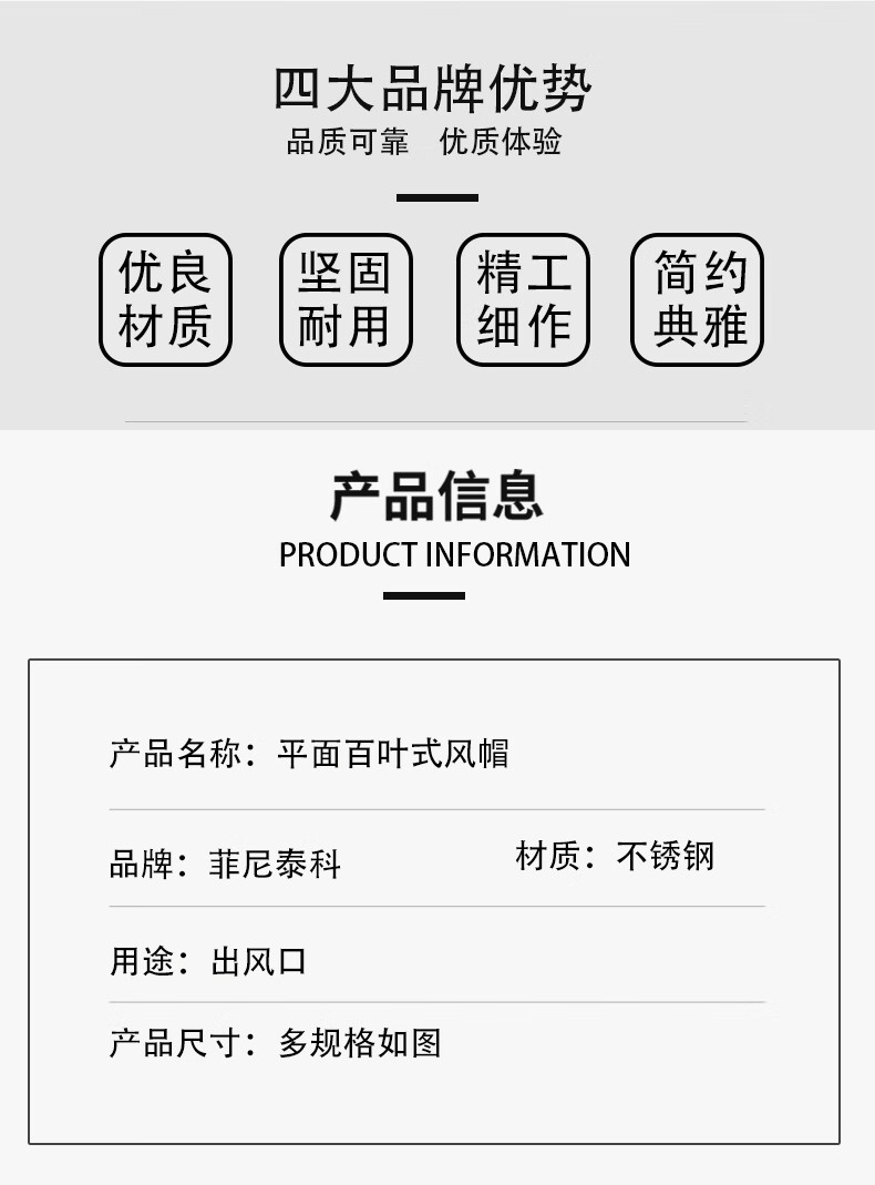 菲尼泰科 平面百叶式风罩风帽 P501 304不锈钢 200mm 1个