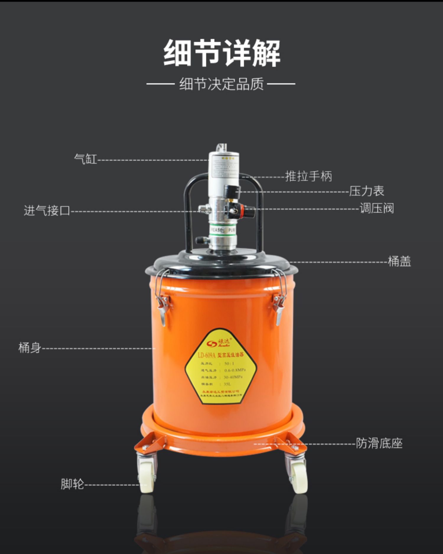 禄达 气动黄油机 LD-6010 40升标配调压阀+万向枪+6米油管 1套