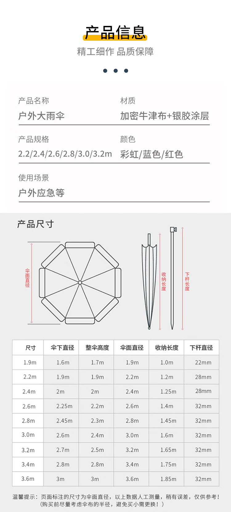 优麦达 户外大雨伞 YJN078 2.6米蓝色+银胶 1顶
