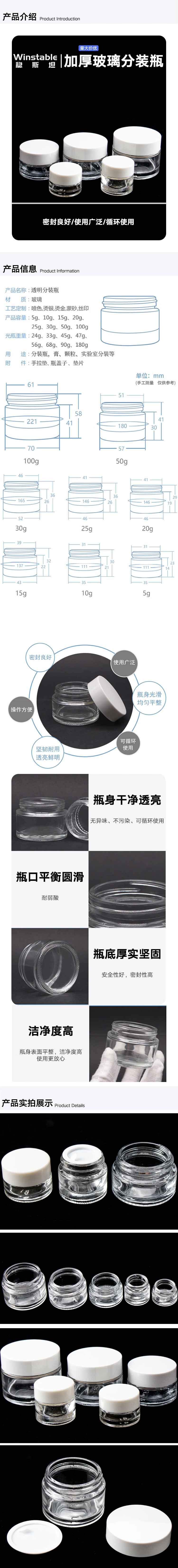 稳斯坦 透明玻璃分装膏霜瓶 WW-87 10g 1个