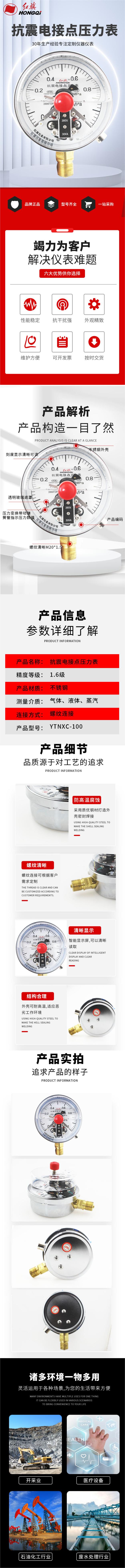红旗 耐震电接点压力表 YTNXC-100 0-40MPA 1个