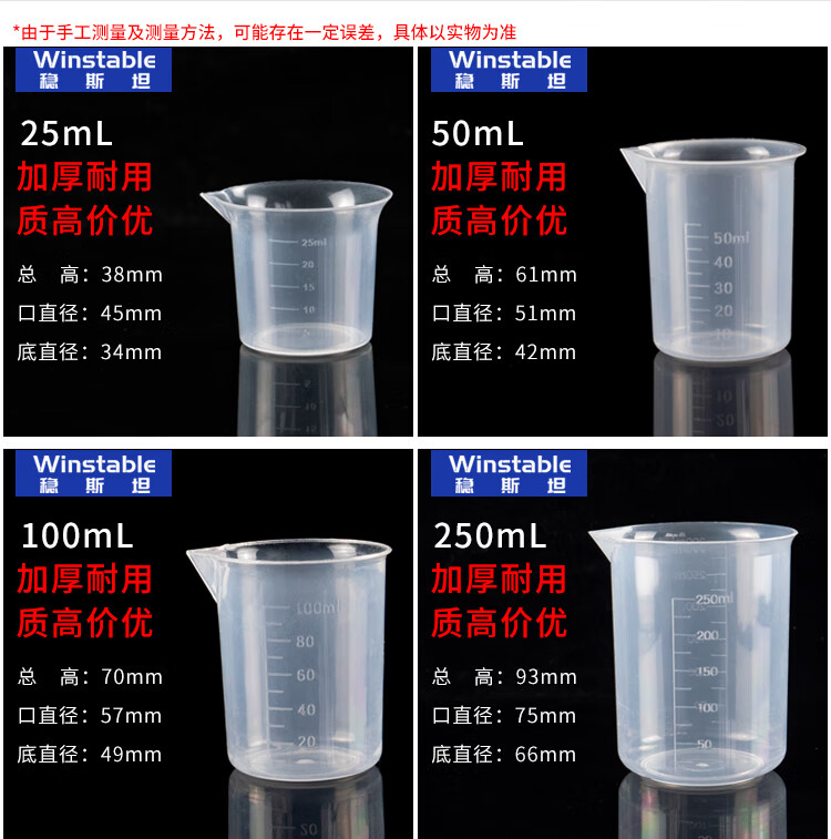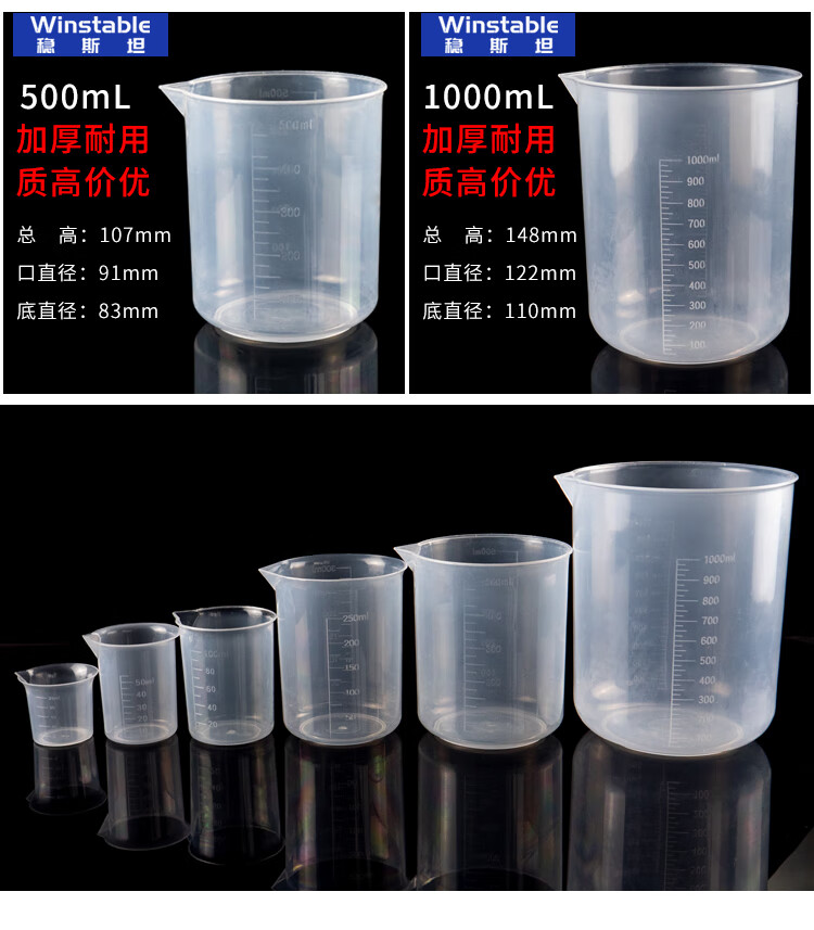 稳斯坦 塑料无手柄计量杯 WLL0017 PP 1000ml 1个