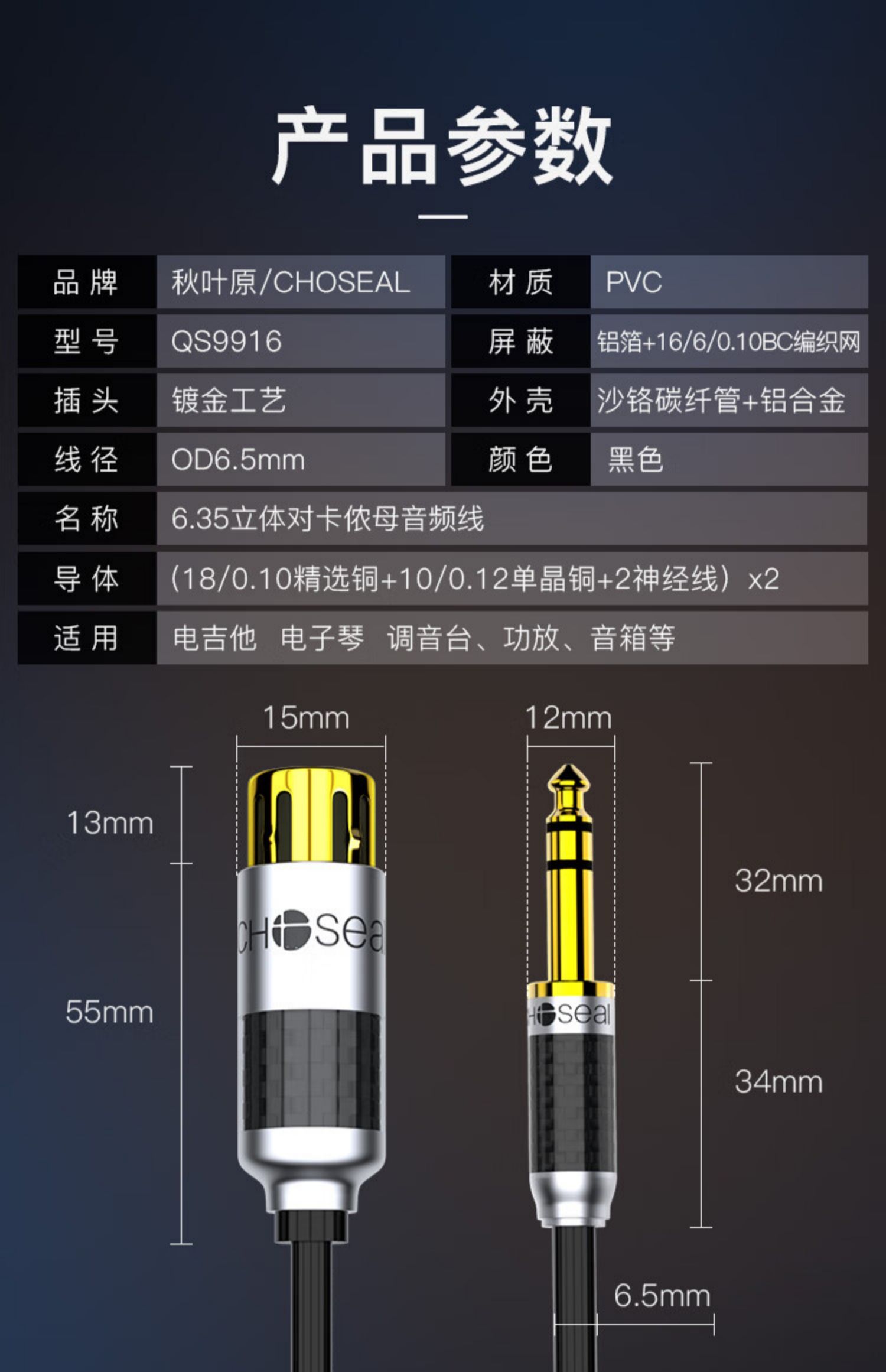 秋叶原 卡农公音频线 QS9915 OD6.5mm 黑色 5m 1根