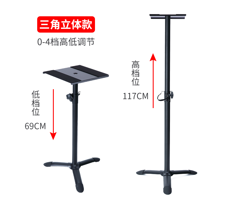 瀚睿 音箱支架 S42 三角平底款 黑色 76-126cm 2支 1套