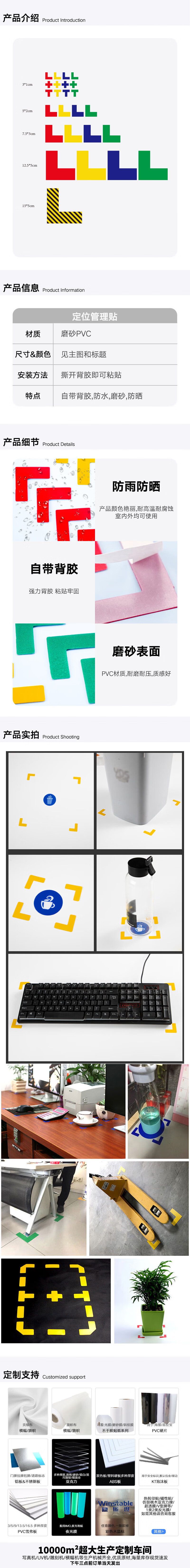稳斯坦 6S管理桌面定位贴 WST220 L型 10*4cm 黄色 12个 1包