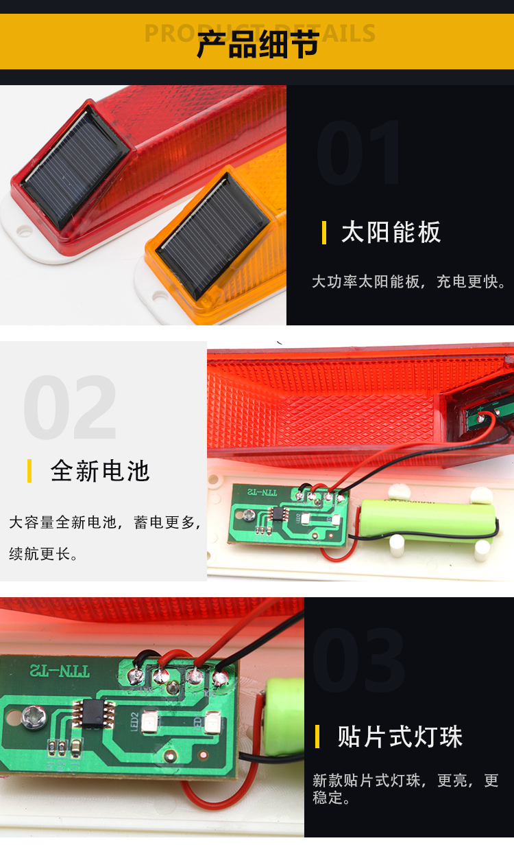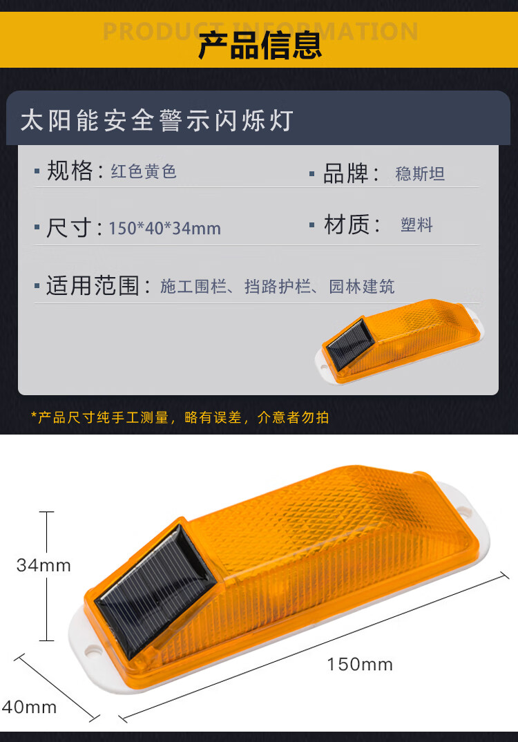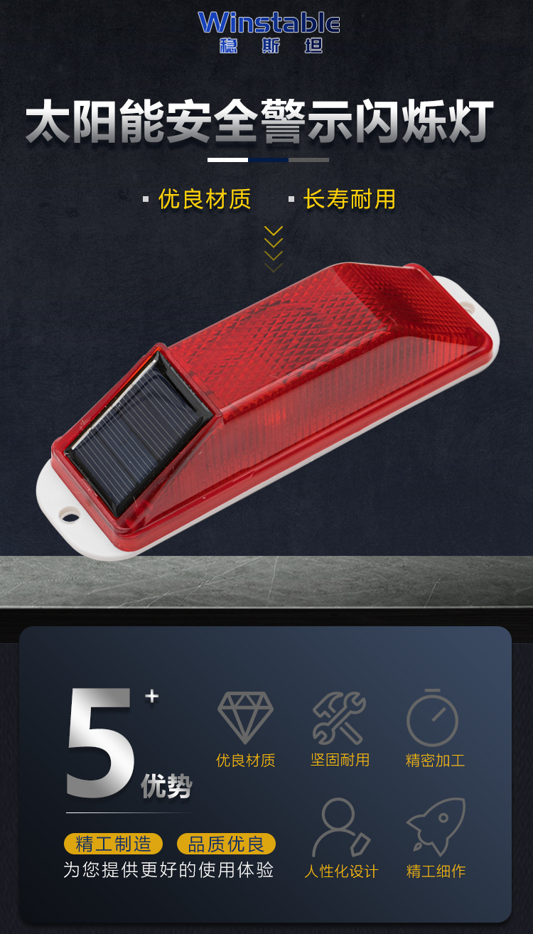 稳斯坦 太阳能安全警示闪烁灯 W761 红色 1个
