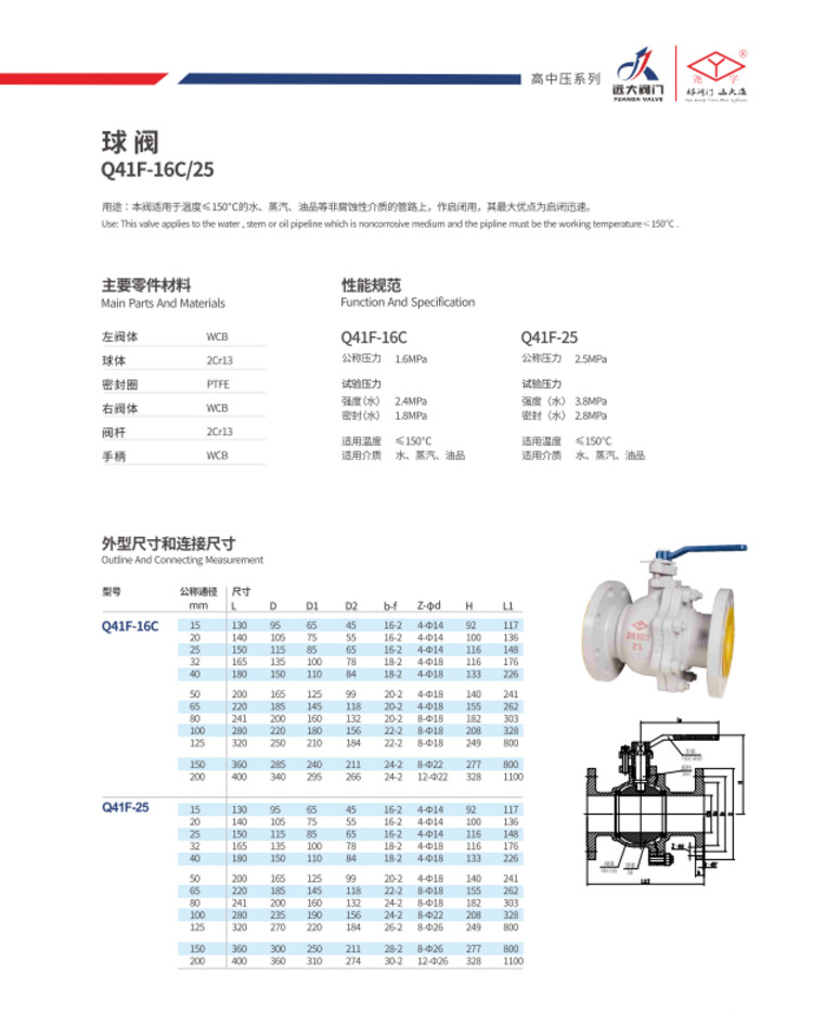 远大阀门 燎原系列铸钢法兰球阀 Q41F-25C DN50 1个