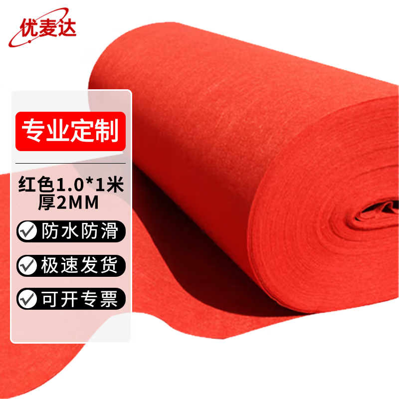 优麦达 一次性地毯 YJN119 2mm厚*1.0m宽*1m红色 1米