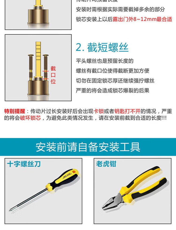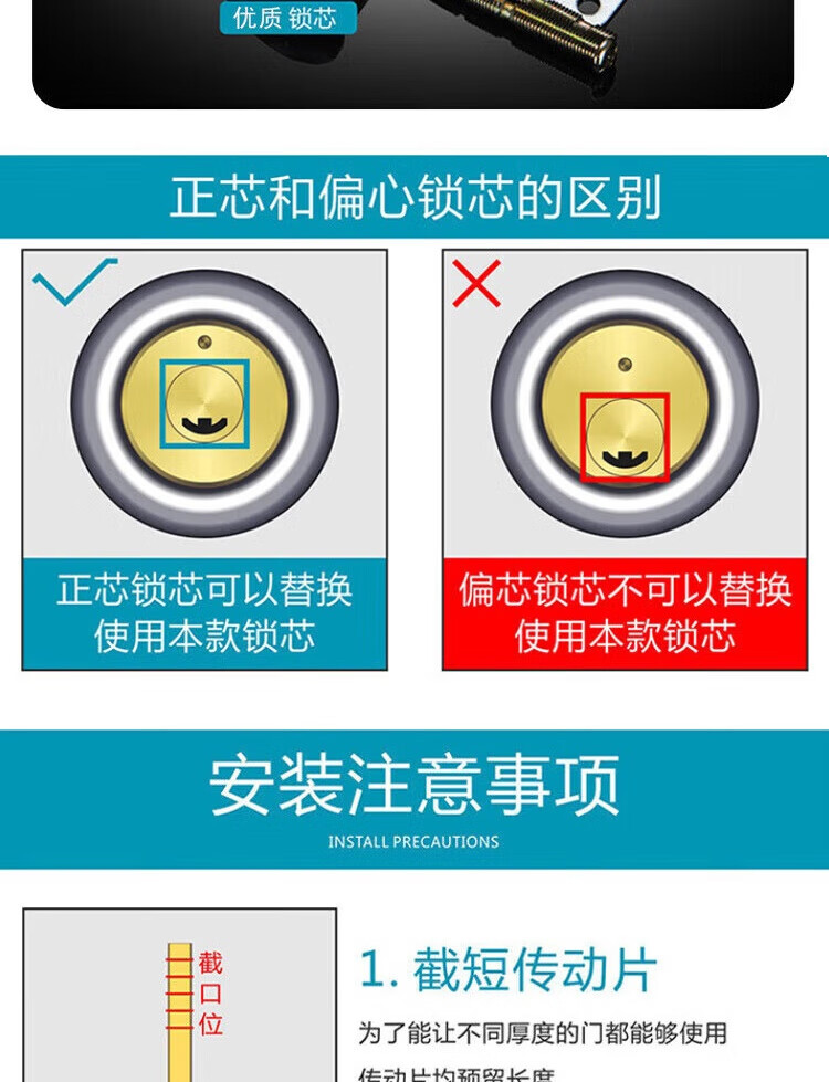 稳斯坦 防盗门锁芯 W7220 月牙钥匙款 1个