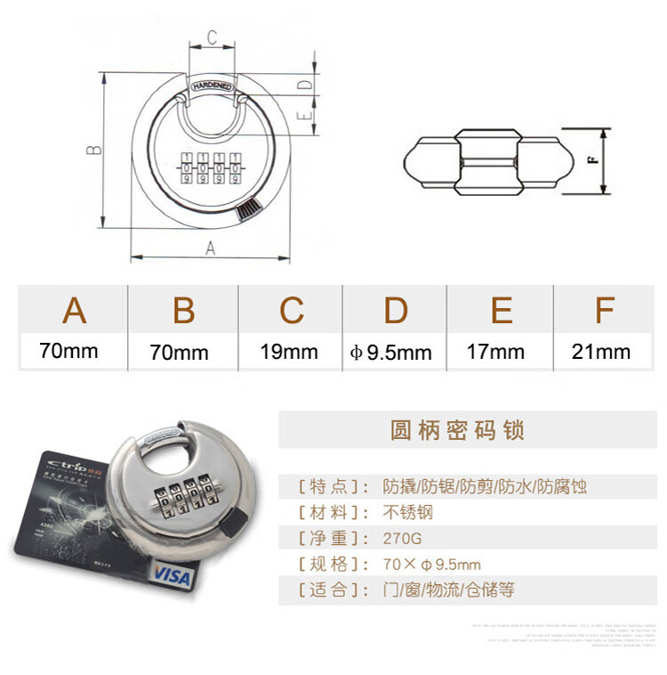 稳斯坦 元宝密码锁 W5044 圆饼锁 1个