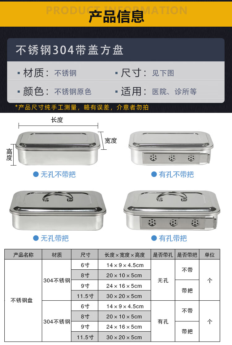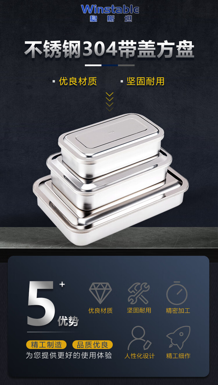 稳斯坦 平底托盘器械盒 W5636 304不锈钢 11.5寸 无孔有提手 1个