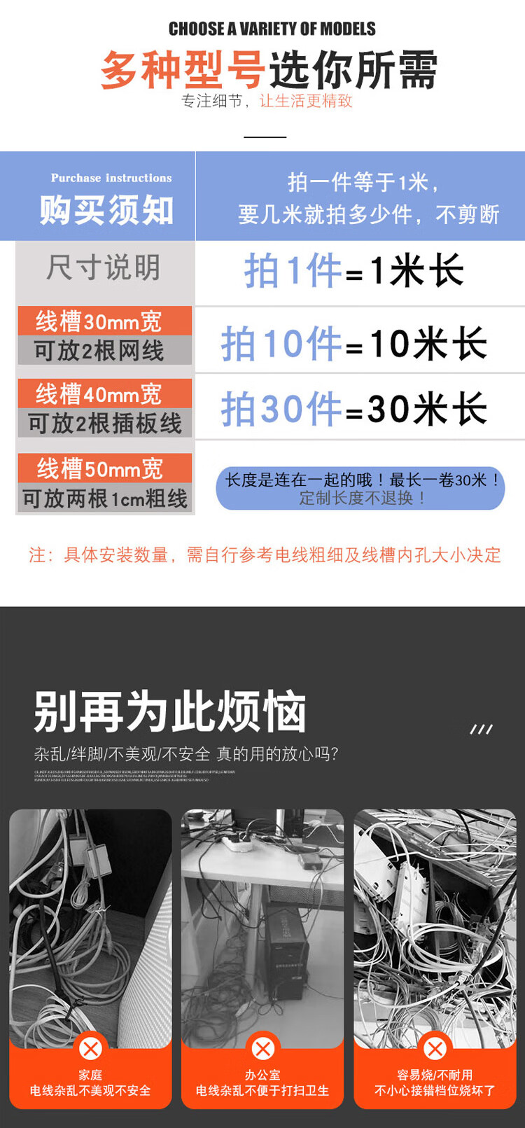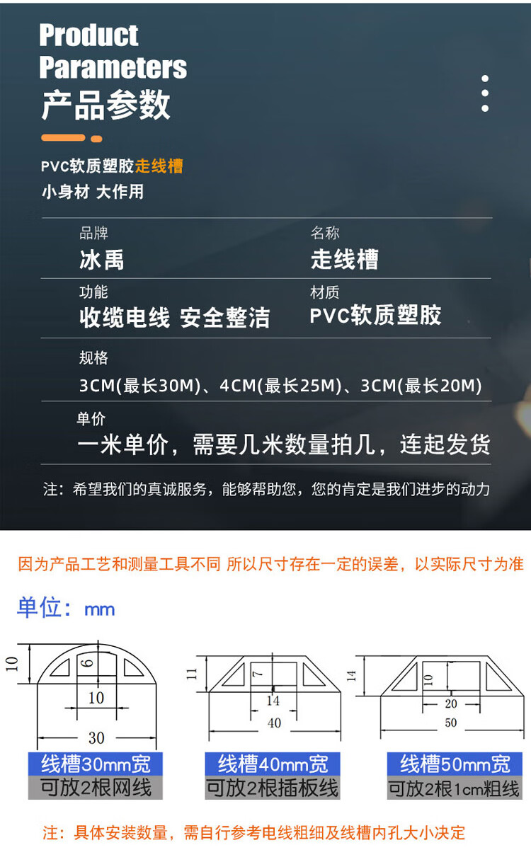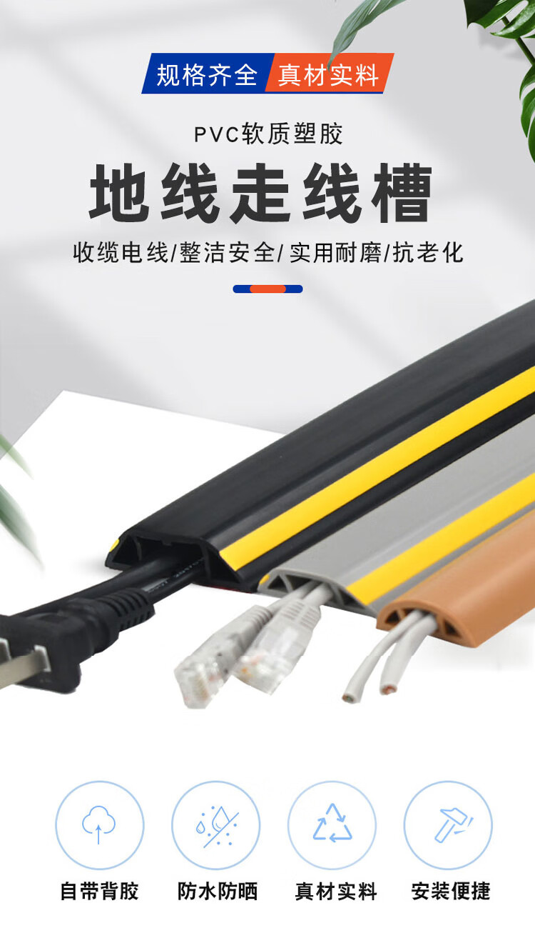 冰禹 PVC阻燃地线槽 BJ305 3厘米宽 灰色 软线槽 1米