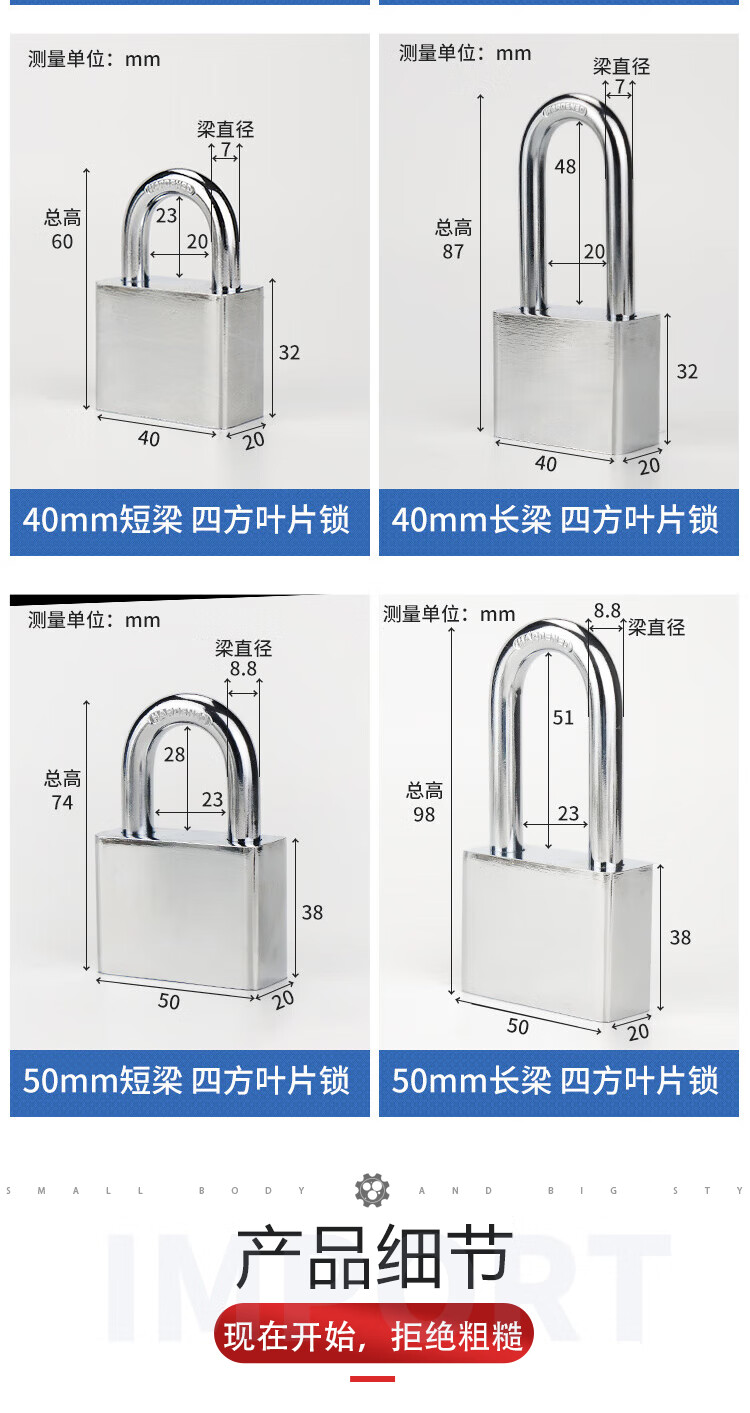 优麦达 方形防盗挂锁 单开3把钥匙 40mm长梁 1个