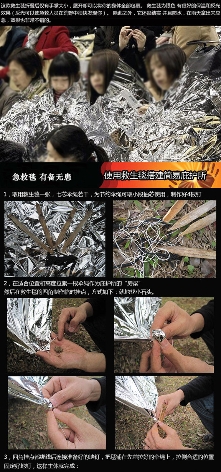 海斯迪克 多功能急救保温毯 HKL-387 银色双面 130*210cm 10个 1件